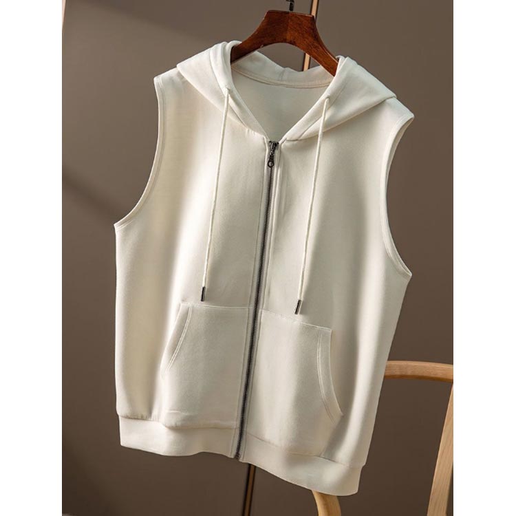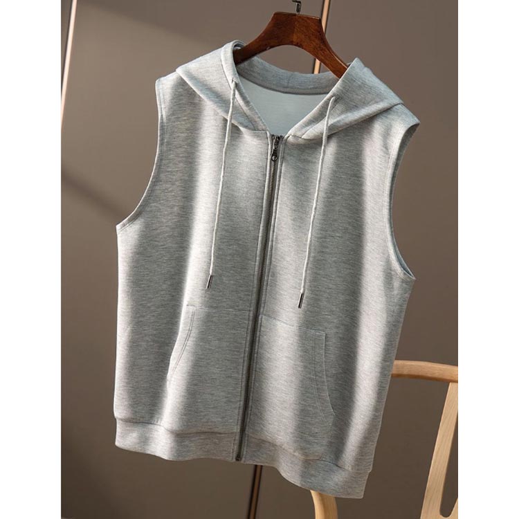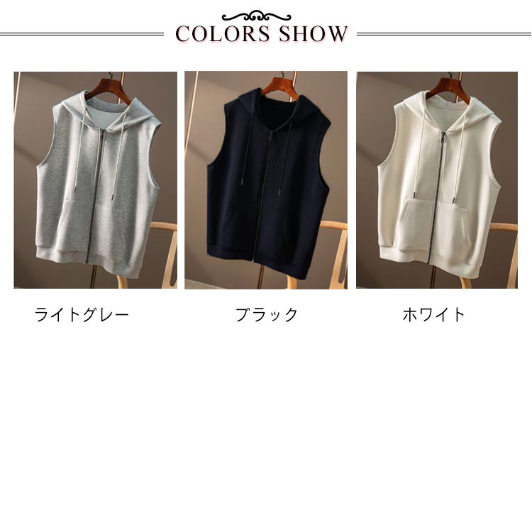 スウェット ベスト レディース スウェットベスト ノースリーブ トップス フード付き ライトアウター 綿 無地 シンプル 黒 白 グレー おしゃれ ジップアップパーカー 前開き ベスト 春アウター 羽織り ライトスエット ベスト 袖なし ゆったり 無地 レイヤード 送料無料