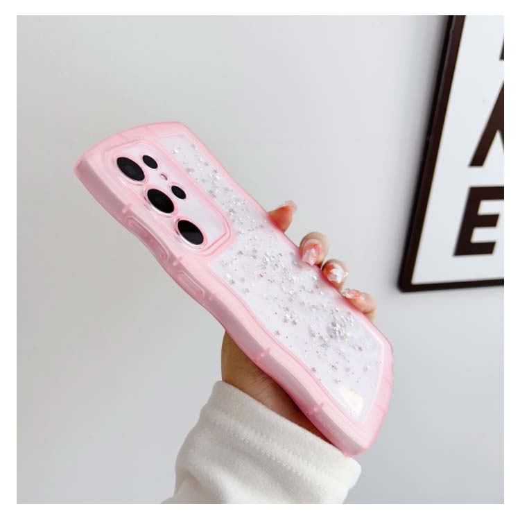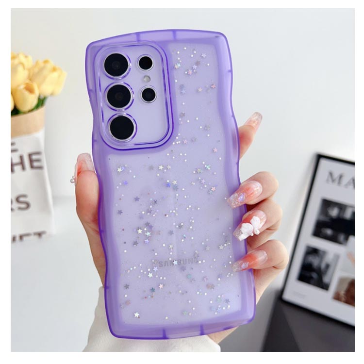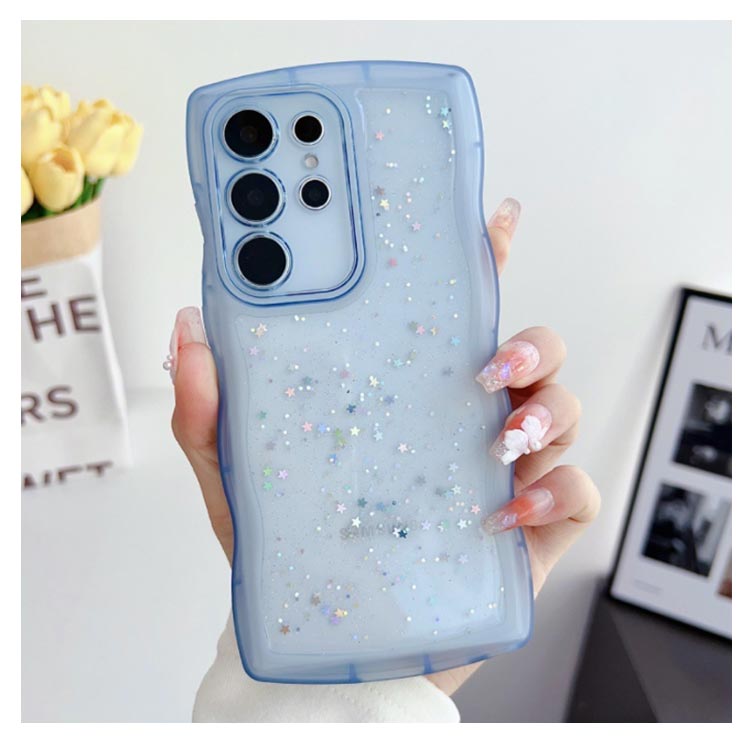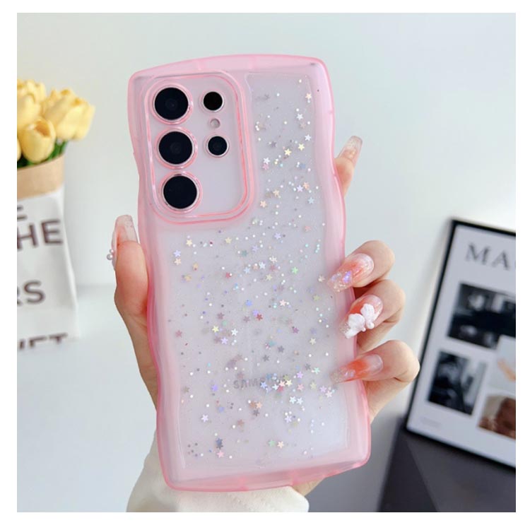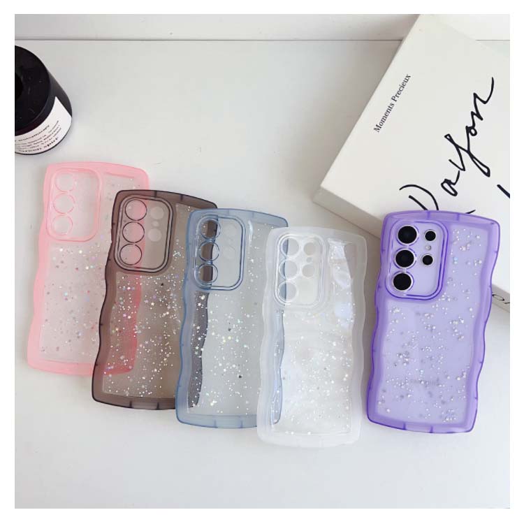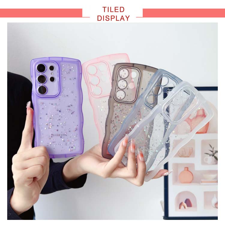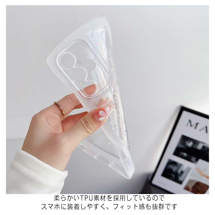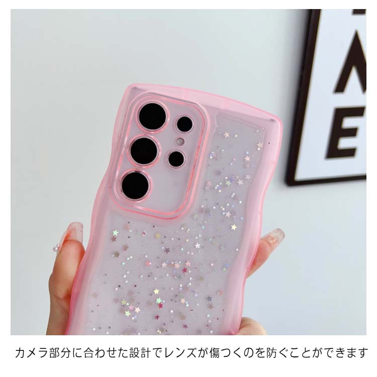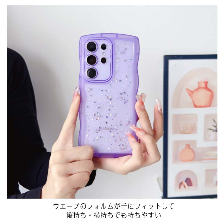Galaxy Case キラキラ[手にフィットするフォルム]ウエーブのフォルムが手にフィットして縦持ち・横持ちでも持ちやすい柔らかいTPU素材を採用しているのでスマホに装着しやすく、フィット感も抜群ですカメラ部分に合わせた設計でレンズが傷つくのを防ぐことができます