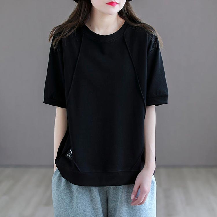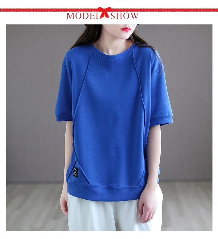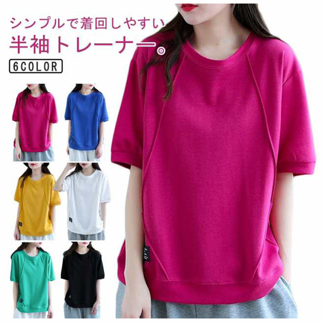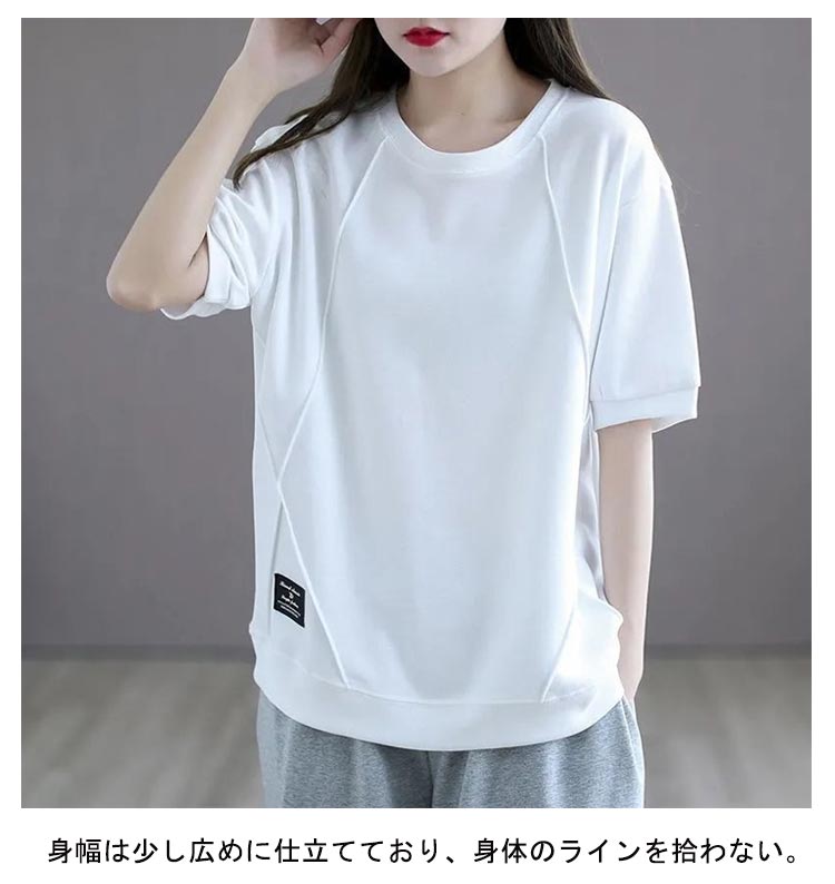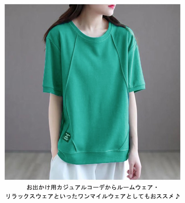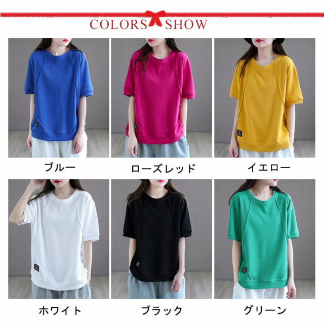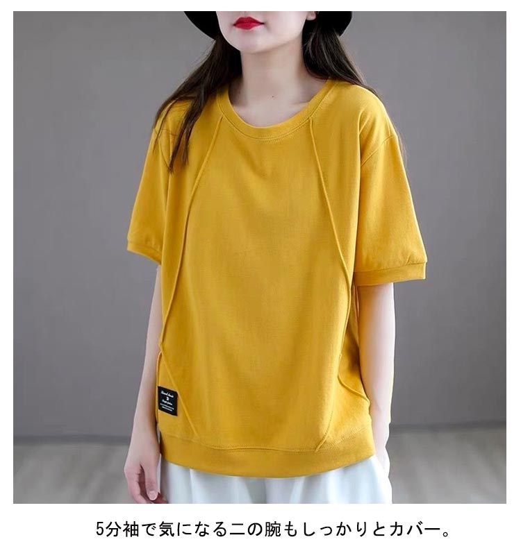 半袖 5分袖 レディース プルオーバー 半袖Tシャツ カットソー 半袖スウェット トップス クルーネック 無地 シンプル ゆったり 五分袖 体型カバー 大きいサイズ カジュアル 春夏 送料無料