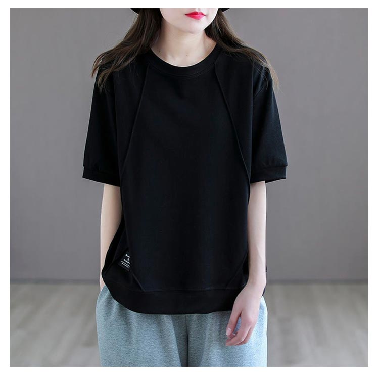 | シンプルで着回しやすい半袖トレーナー。 5分袖で気になる二の腕もしっかりとカバー。 身幅は少し広めに仕立てており、身体のラインを拾わない。 お出かけ用カジュアルコーデからルームウェア?リラックスウェアといったワンマイルウェアとしてもおススメ? | |