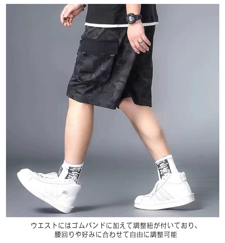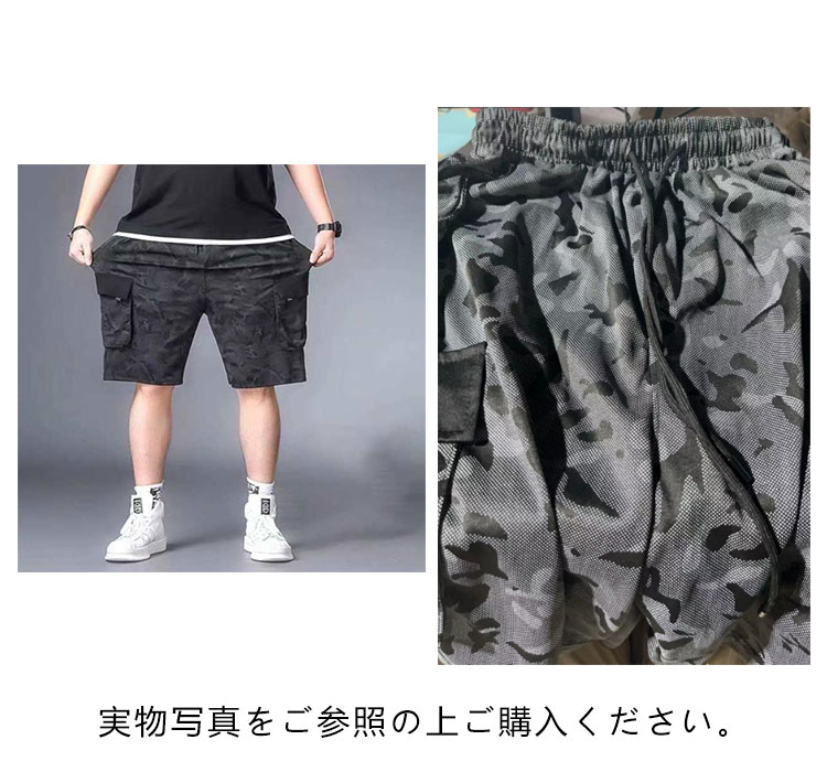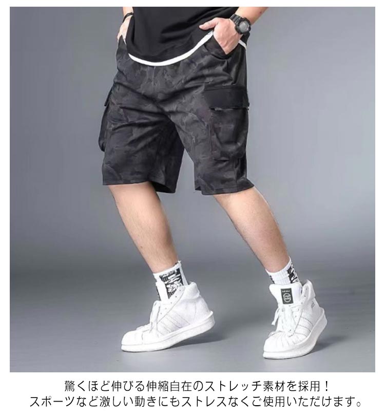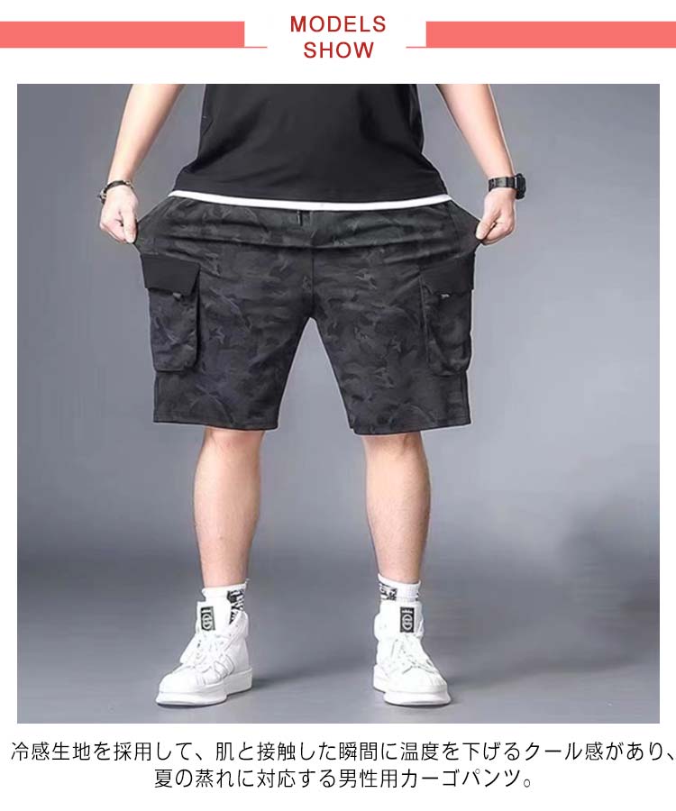 L~8XL!接触冷感 カーゴパンツ メンズ ハーフパンツ 夏 ゆったり 薄手 半ズボン 迷彩 作業着 ひんやり 涼しい 冷感パンツ スリム 美脚 6ポケット ウエストゴム カジュアルパンツ ワイドパンツ 無地 おしゃれ 大きいサイズ 送料無料