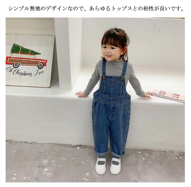 90-130cm!オールシーズンで着られるキッズ用オーバーオールです。ジーンズ生地が丈夫で、ごわつきもなく着心地抜群! ゆとりのあるゆったりシルエットはどんな動きも対応でき、たくさん動く活発なお子さまにもGOOD!シンプル無地のデザインなので、あらゆるトップスとの相性が良いです。様々なトップスやシューズとの相性よい☆定番の子供デニムオーバーオール、これからの季節にピッタリ!