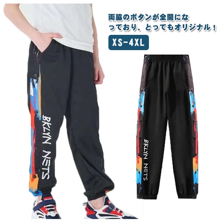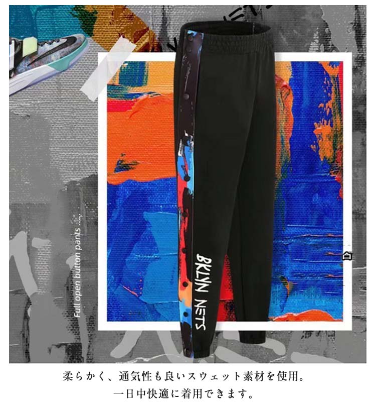 裾ボタン サイドボタン バスケットボールパンツ キッズ ジュニア 大人 バスケットパンツ スナップボタン サイドライン 春 秋 冬 長ズボン ロングパンツ ジャージ 下 男性 女性 メンズ レディース バスパン バスケパンツ 送料無料