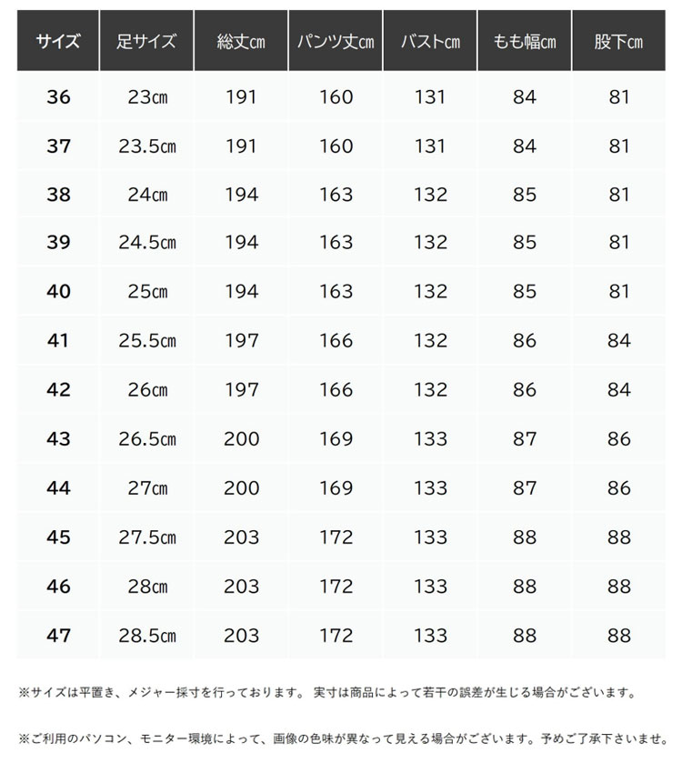 | サイズ | 36(23cm) 37(23.5cm) 38(24cm) 39(24.5cm) 40(25cm) 41(25.5cm) 42(26cm) 43(26.5cm) 44(27cm) 45(27.5cm) 46(28cm) 47(28.5cm) |