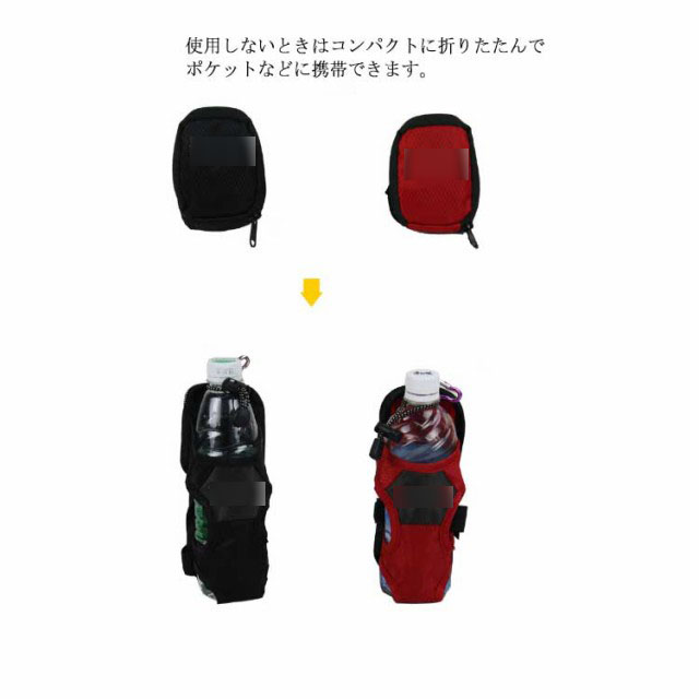 ペットボトルホルダー 登山 リュック 取り付け 水筒ケース ドリンクホルダー 折り畳み カラビナ ショルダー ベルト 肩掛け 携帯用 ボトルポーチ 軽量 旅行 ドリンクホルダー ウォーキング ベビーカー