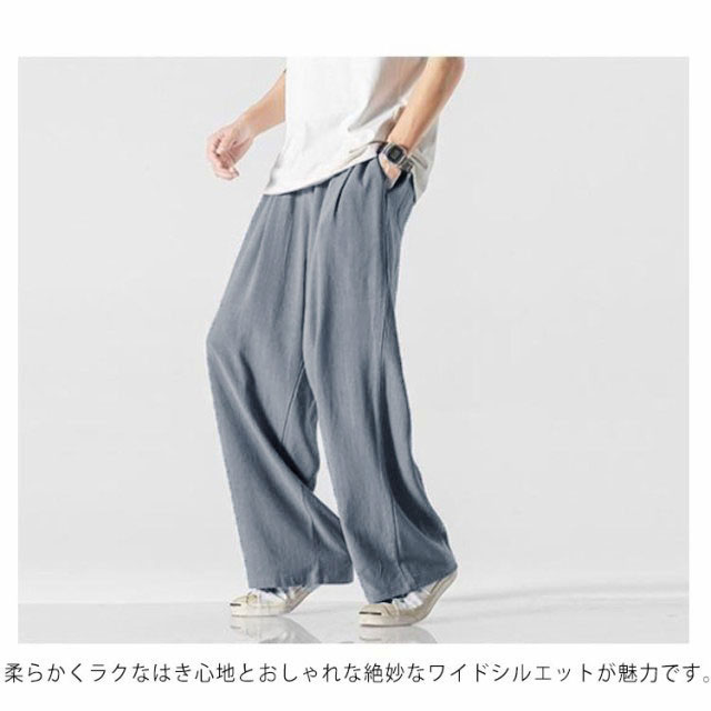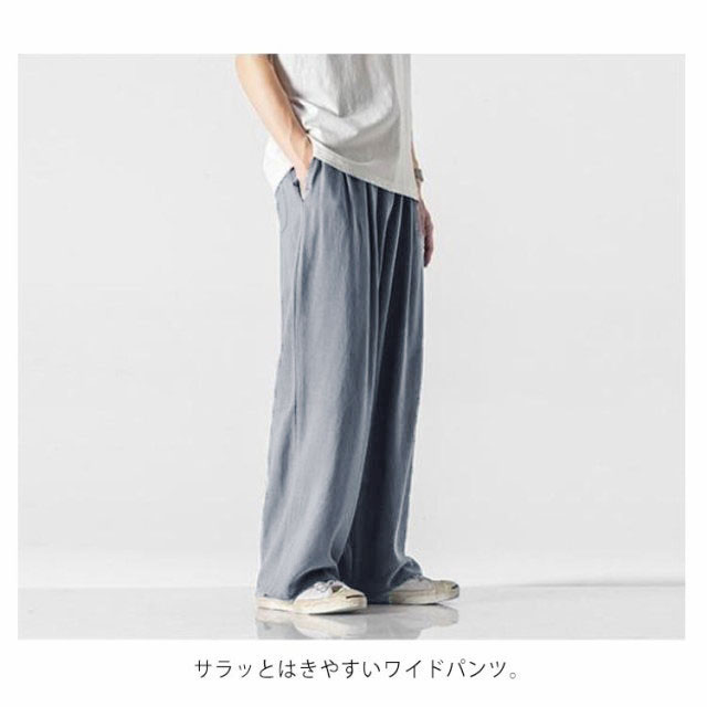 サルエルパンツ リネン パンツ メンズ ワイドパンツ 春夏 綿麻 袴パンツ ゆったり ビッグシルエット 送料無料 亜麻 ズボン 太め ゴムウエスト 涼しい リラックス 大きいサイズ カジュアル ナチュラル 父の日