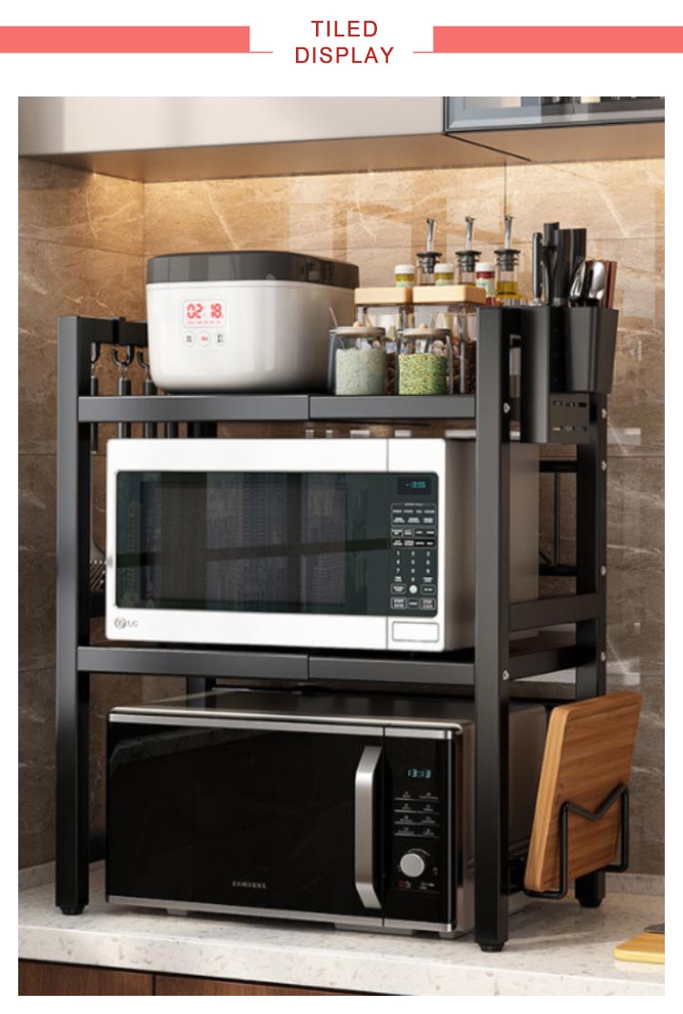| 【頑丈&清潔しやすい】高品質なスチールを採用しており、耐荷重が強くて、錆びにくく、清潔しやすいです。汚れや水が付いた際は、サッと拭き取るだけでお手入れは簡単です。【フック、箸立て、包丁スタンド付き】フックが付いていますので、雑巾や調理道具など吊り下げ収納できます。【キッチンスペースを有効活用】レンジ上に新たな収納スペースを利用して、キッチン家電や、調味料、調理器具、食材などをすっきり整理でき、キッチンの限られた空間を無駄なく使って、便利で快適な調理スペース作ります。 | |