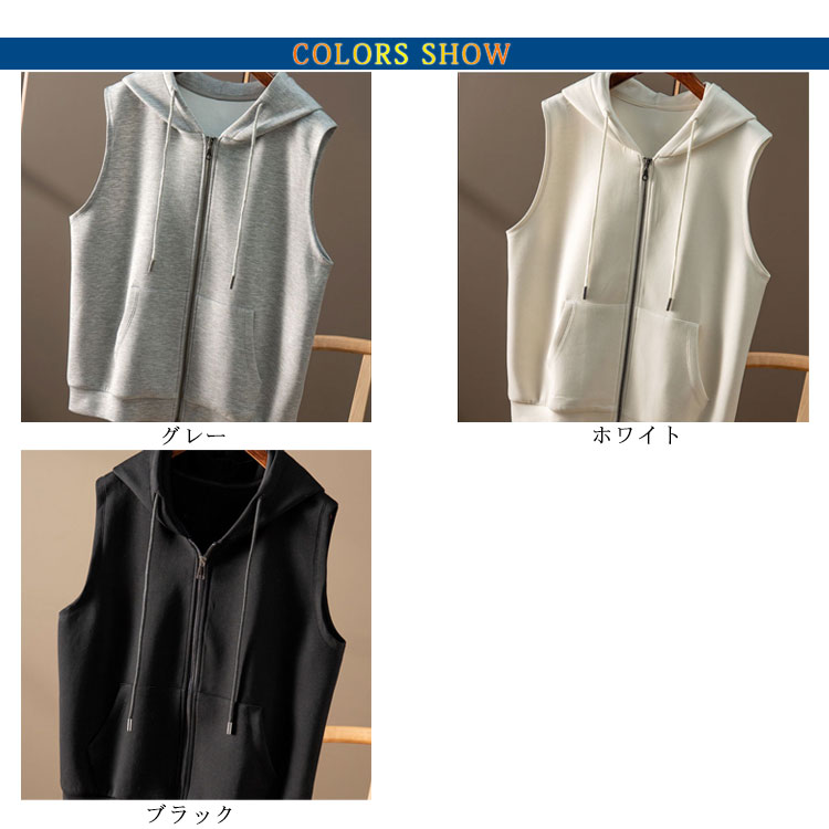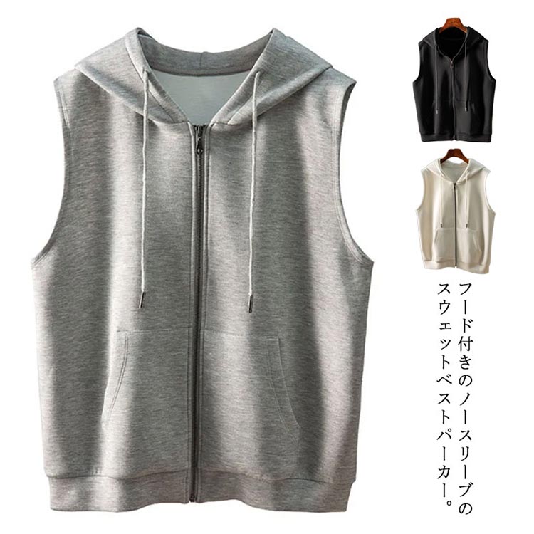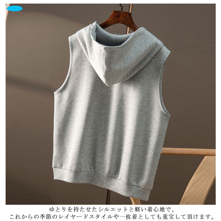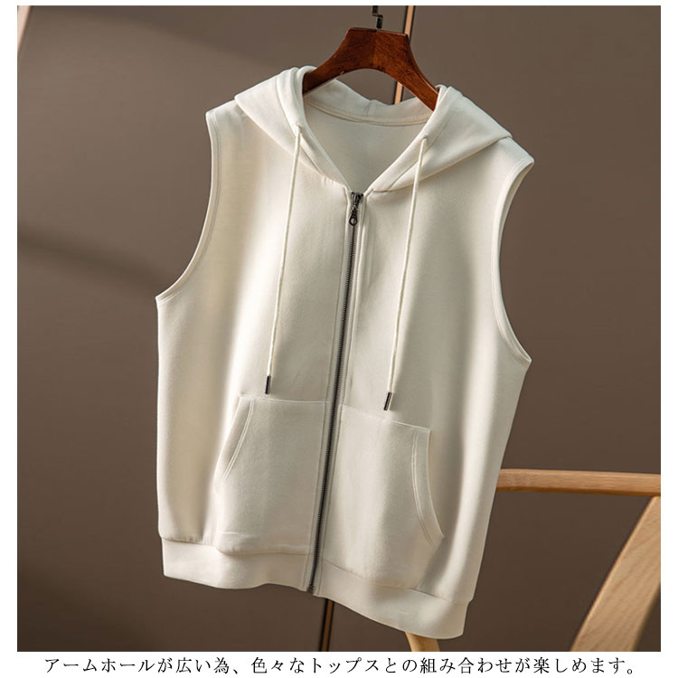 送料無料 ベスト パーカー レディース 春 秋 前開き トップス フード付き ジップアップ ポケット付き ノースリーブ 前開き 重ね着 レイヤード スウェット パーカーベスト カジュアル 体型カバー 無地 ゆったり