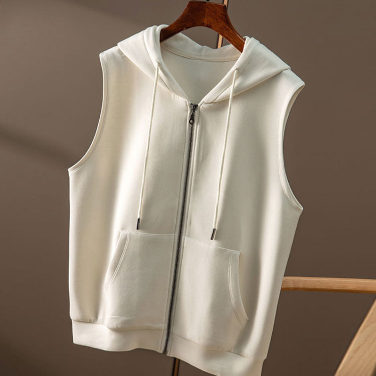 フード付きのノースリーブのスウェットベストパーカー。ゆとりを持たせたシルエットと軽い着心地で、これからの季節のレイヤードスタイルや一枚着としても重宝して頂けます。デイリーに不可欠なポケットが両サイドについていて実用性抜群。シルエットを邪魔しないところも。アームホールが広い為、色々なトップスとの組み合わせが楽しめます。シャツやブラウス、ワンピースなどとのレイヤードもバランスが取りやすく、インナー次第で雰囲気を変えられます。ゆったりとしたサイズ感と柔らかい素材感、着疲れしないリラックスできる着心地です。