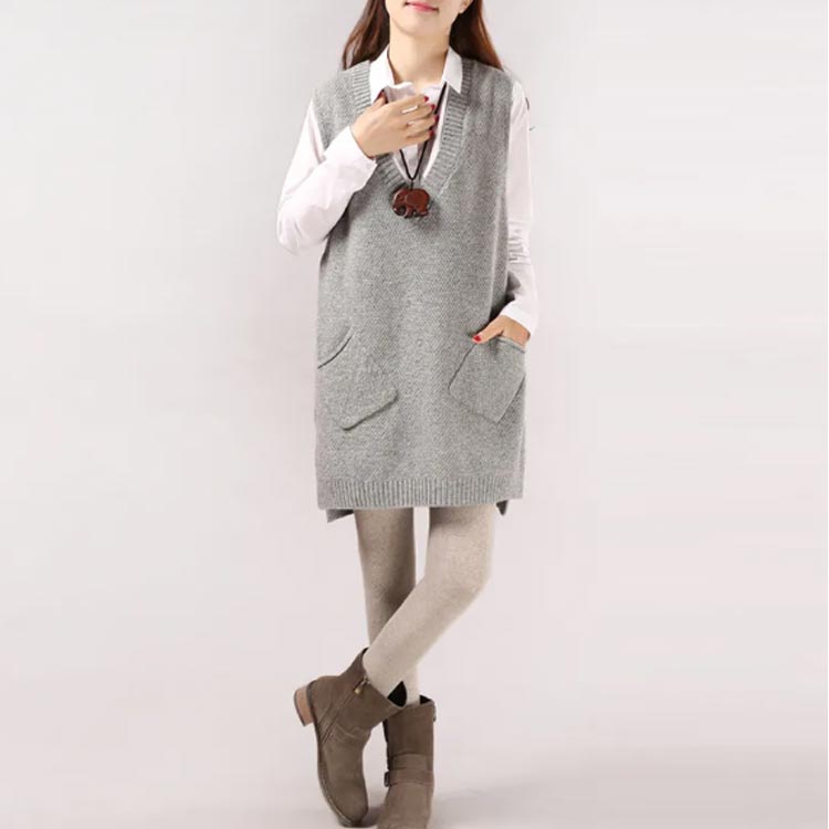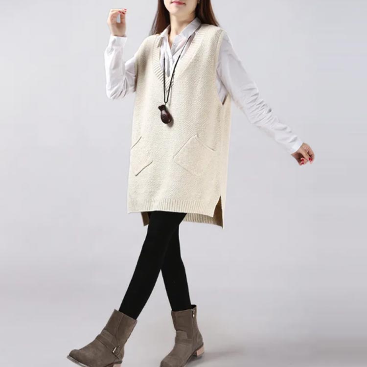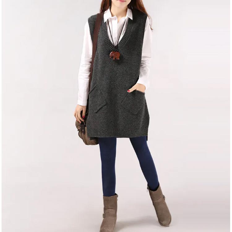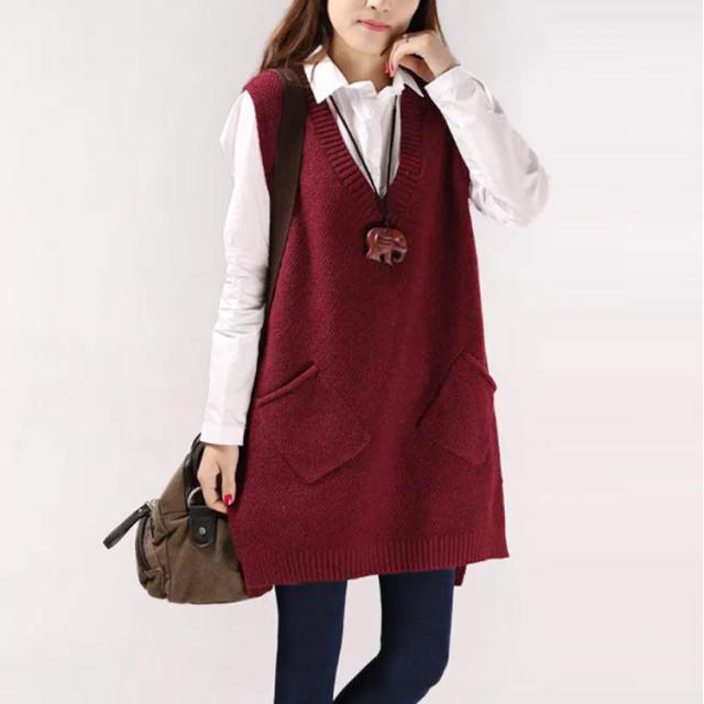 チュニックベスト レイヤード ニット ロングベスト ニットベスト レディース Vネック トップス ベスト 重ね着 スリット入り 秋冬 セーター ノースリーブ ロング丈 体型カバー ポケット付き 春 秋 ゆったり お洒落