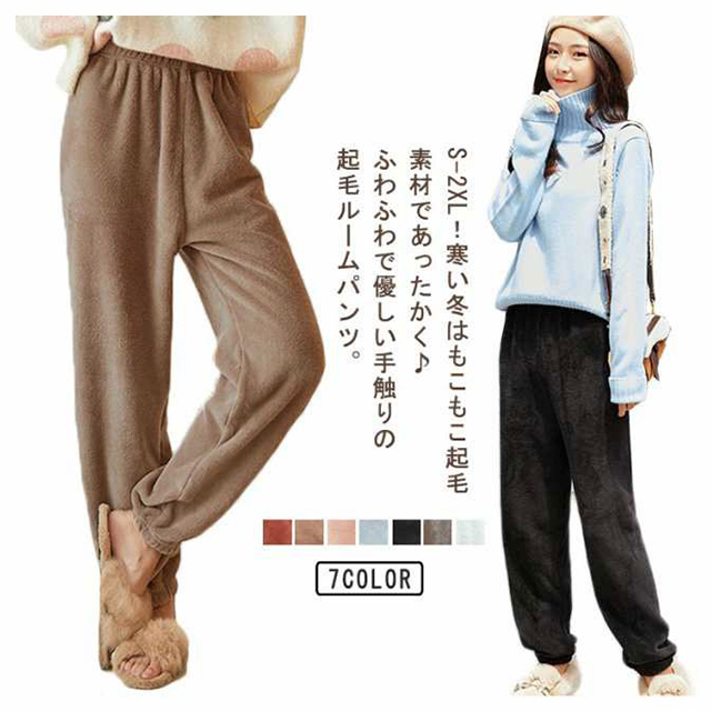 | S-2XL!寒い冬はもこもこ起毛素材であったかく?ふわふわで優しい手触りの起毛ルームパンツ。 冬でもぽかぽかあたたかく快適に過ごせます。 足口にもゴムが入っているので、就寝時などにずり上がりにくく、あたたかさをキープできます。 選べるカラーも嬉しい?洗濯機で洗えるのでいつも清潔! | |
