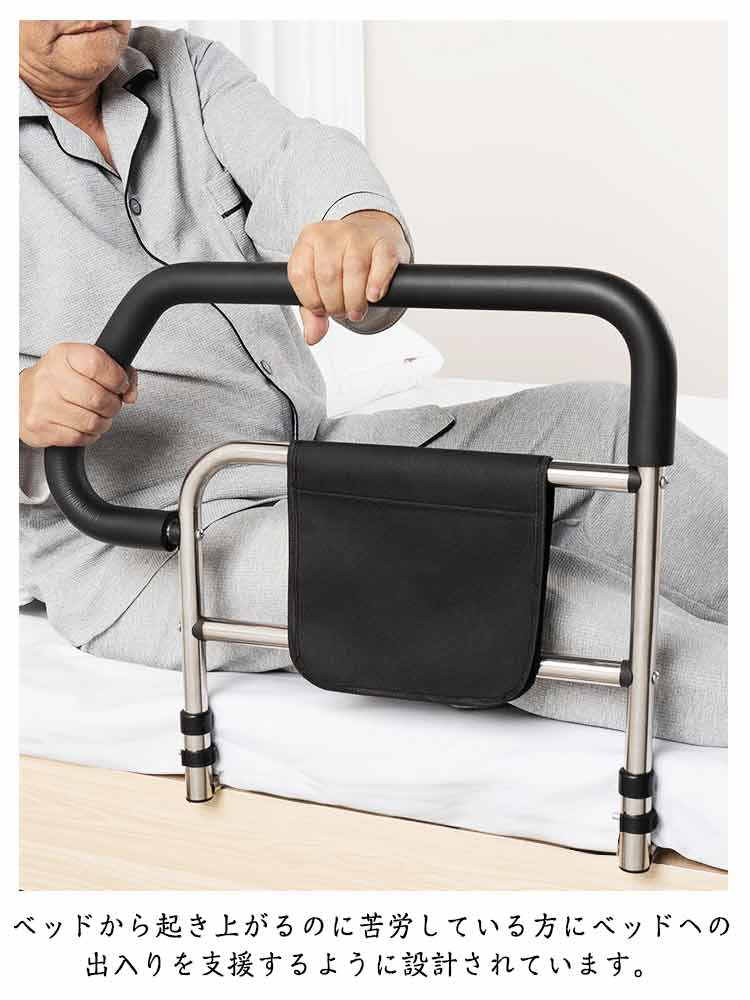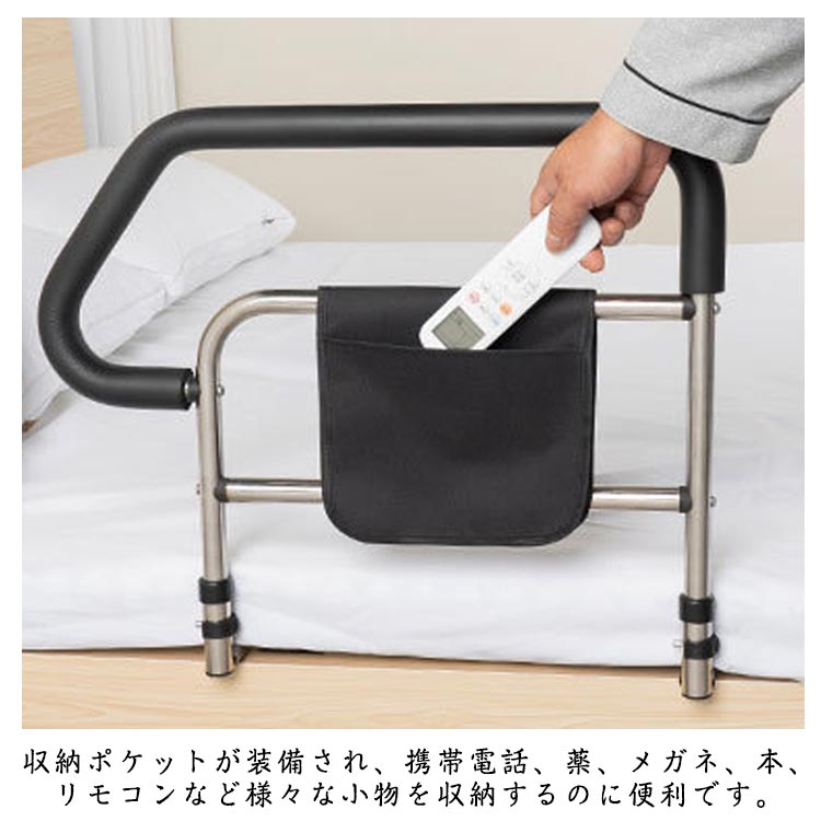 ベッド用 起き上がり手すり ベッドサイド ベッドアーム ベッドガード 補助ガード 転倒防止 小物整理 収納ポケット付き 高齢者 介護用 組立簡単 安定性 布団ずれ防止 送料無料