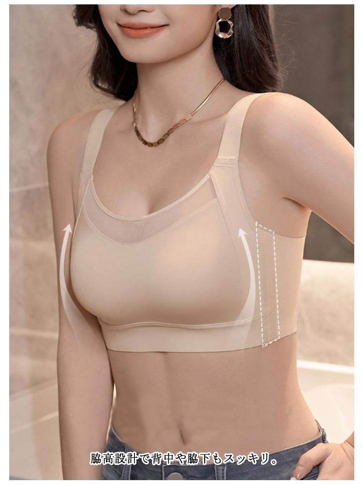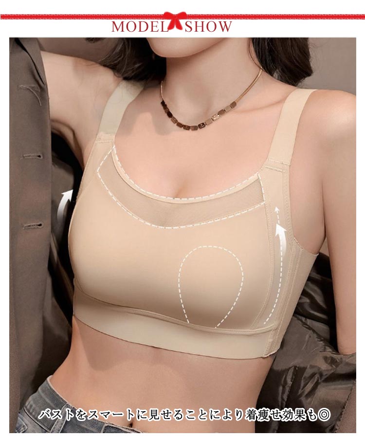大きなバストを小さく見せるブラバストをスマートに見せることにより着痩せ効果も◎幅広ストラップ採用で長時間の着用も痛くなく安定感のあるつけ心地。胸元も抑えてくれるからチラ見えにも対応。脇高設計で背中や脇下もスッキリ。胸を小さく綺麗に見せるブラを着るだけで、どんな洋服もスマートなスリムシルエットに大変身!