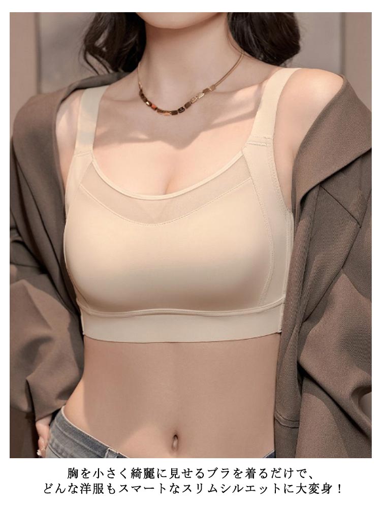 胸を小さく見せるブラ フルカップ 胸が小さく見えるブラ ノーワイヤー ナイトブラ ブラジャー 大きな胸を小さく見せる ブラジャー 脇肉 背中 スッキリ 補正下着 胸元カバー さらし 大きいサイズ 単品 レディース 全5色 送料無料