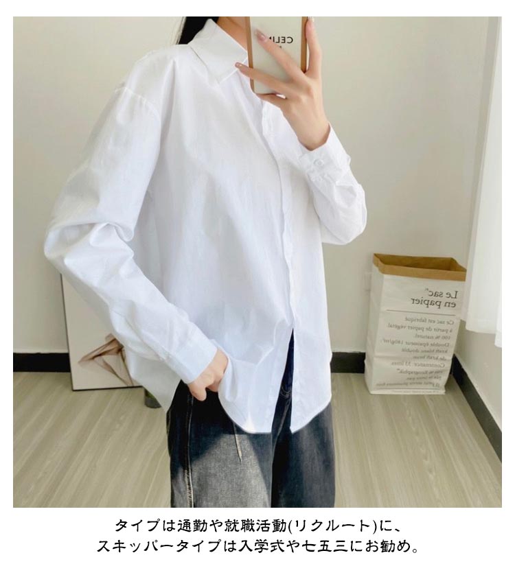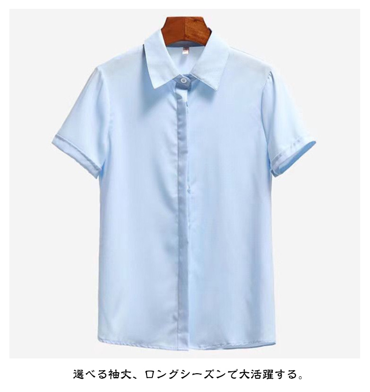乾きやすくしわになりにくいのでお手入れも楽々!アイロン無しでも着られる形状安定シャツポリエステル素材を採用する。素材の性質により、乾きやすくシワになりにくいのでお手入れもラクラク。タイプは通勤や就職活動(リクルート)に、スキッパータイプは入学式や七五三にお勧め。シンプルでオールシーズン大活躍!スカート、パンツにもよく合います。洗濯機で洗えるので、いつでも清潔に保つことができます。選べる袖丈、ロングシーズンで大活躍する。