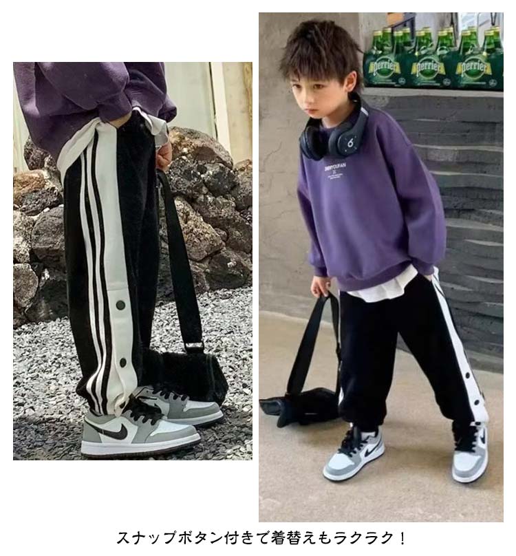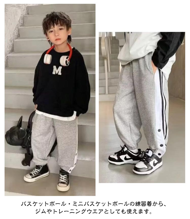裏起毛 バスケットボールパンツ キッズ ジュニア 男の子 女の子 バスケットパンツ スナップボタン 裾ボタン サイドボタン サイドライン 春 秋 冬 防寒 長ズボン ロングパンツ ジャージパンツ 練習用 バスパン バスケパンツ スポーツウェア トレーニングウエア 120-170cm