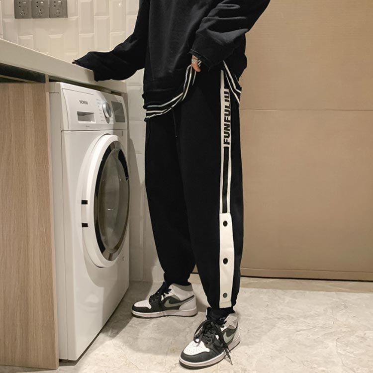 裾ボタンタイプのバスケパンツ 【裏起毛あり・裏起毛なし2タイプ】柔らかく、通気性も良いスウェット素材を使用。ゆったりとしたシルエットとウエストのゴムがリラックスした履き心地。裏起毛で暖かな着心地!シンプルながらロゴをプリントしたインパクトのあるデザインに仕上げました。スポーツパンツだけでは無く、部屋着やパジャマなどでも使え、少しの外出でも履いて頂けます。