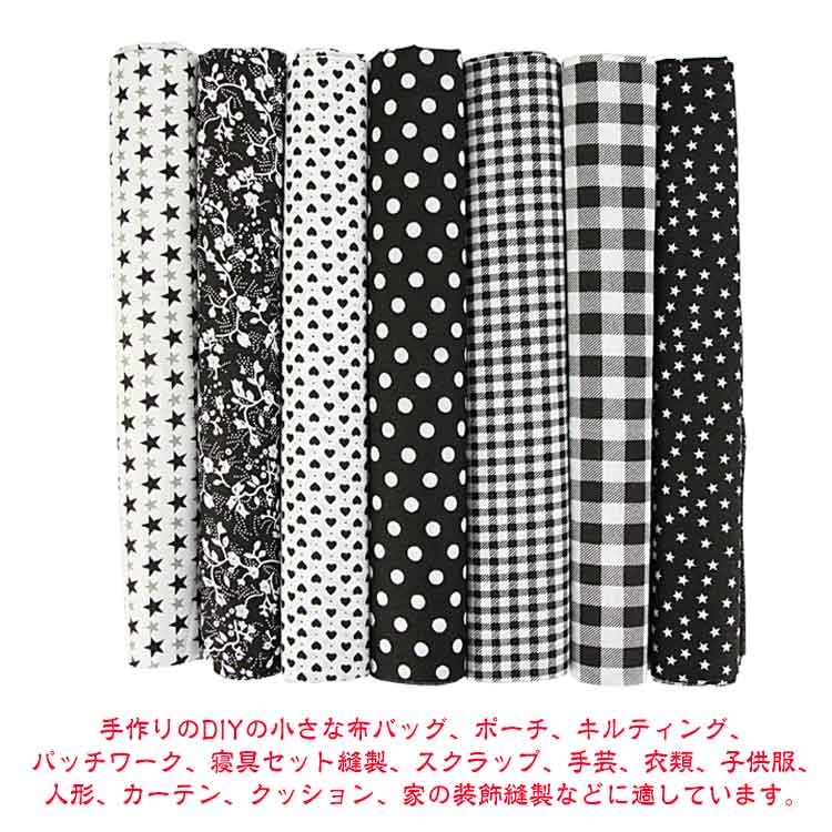 | 【7枚セット】【50x50cm】【選べる12種類】【綿生地】 美しい印刷された綿であり、同系色のカラーの生地がお揃いセットです。 針通りのよい布地なので、パッチワークなどの手縫いにも向いています。 発色が良くて色あわせもしやすいデザインで、入園、入学準備、小物作り、ハンドメイド手芸などにおすすめです。 手作りのDIYの小さな布バッグ、ポーチ、キルティング、パッチワーク、寝具セット縫製、スクラップ、手芸、衣類、子供服、人形、カーテン、クッション、家の装飾縫製などに適しています。 シャツ、ブラウス、ワンピース、スカート、ハンカチーフやストールなどのファッションアイテムをはじめ、小物雑貨、カバーやクロス等インテリアファブリックとしてもご使用いただけます。 手芸用生地を初めてご購入の方、柄が多くて迷うという方にもオススメ。 | |