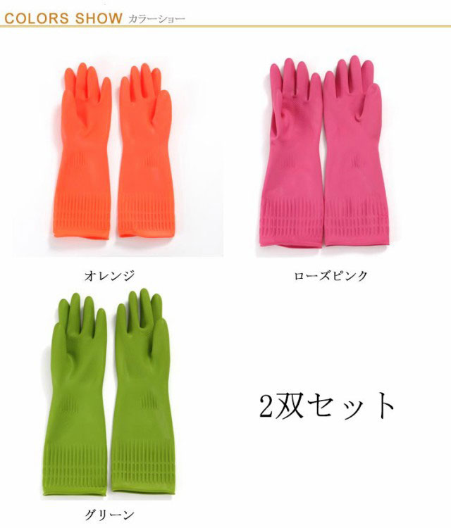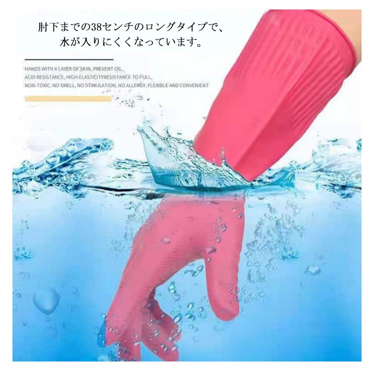 2双セット キッチングローブ ゴム手袋 防水 ロング 食器洗い 滑り止め 洗車用 洗浄用 洗濯用 園芸 ペットケア 塗装用 多用途 強靭性 耐久性 送料無料