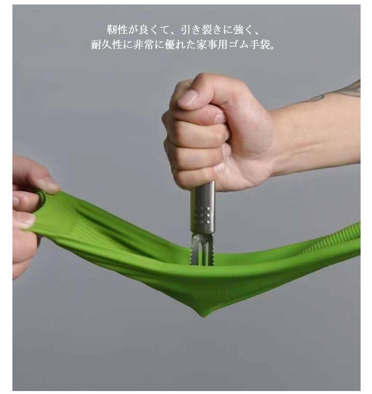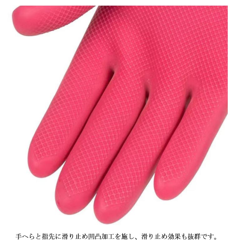 | 2双セット 手荒れを防止!水仕事の必需なグローブです。 肘下までの38センチのロングタイプで、水が入りにくくなっています。 靭性が良くて、引き裂きに強く、耐久性に非常に優れた家事用ゴム手袋。 手へらと指先に滑り止め凹凸加工を施し、滑り止め効果も抜群です。 袖口は伸縮性があるので、作業中の脱落を防止します。 | |