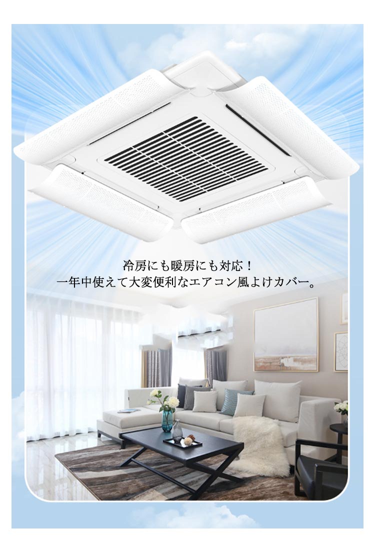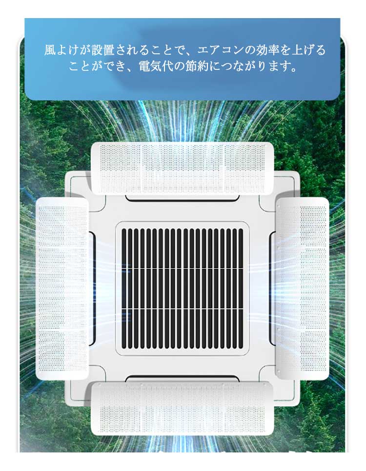 4個セット エアコン 風よけ 業務用エアコン 風よけカバー 風除け 風向き 調整 換気 空気循環 エアコン ルーバー 冷房 暖房 節電 直撃風防止 軽量 風向調整 省エネ オフィス 店舗 飲食店 風向調整板 取り付け簡単 事務所 送料無料