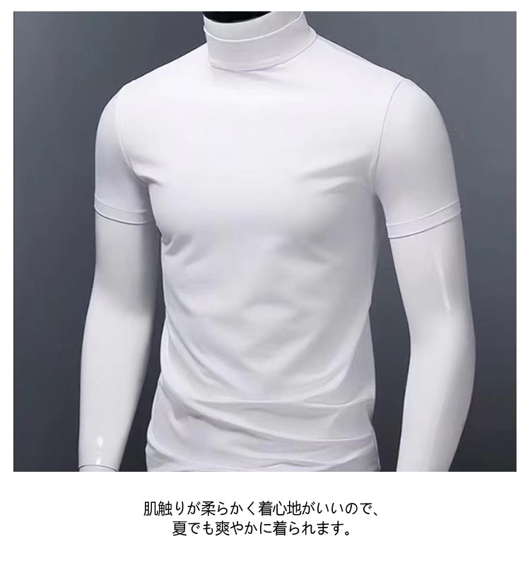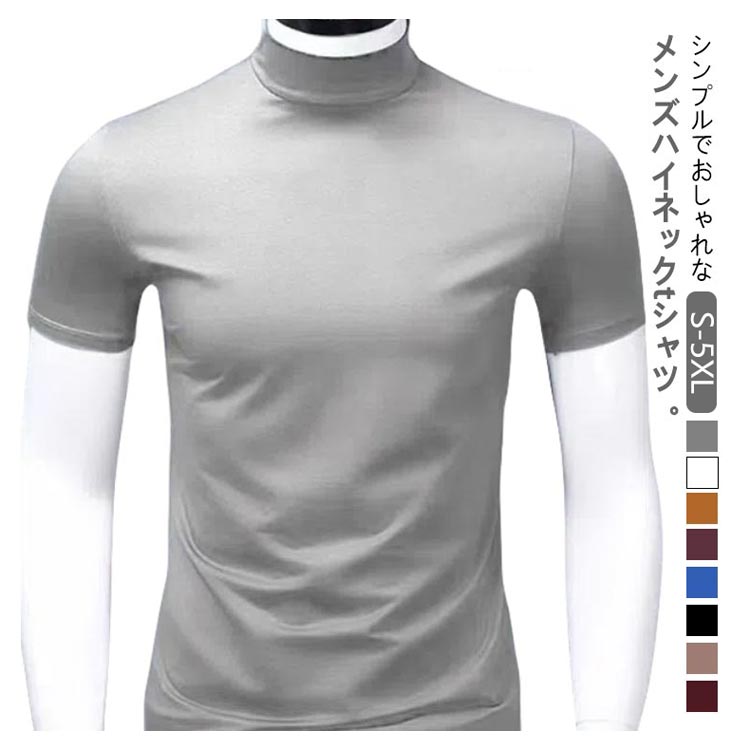 S-5XL メンズ Tシャツ 半袖 ハイネック カットソー 無地 tシャツ 春夏 接触冷感 tシャツ ティーシャツ 半袖 トップス 男性 ゴルフウェア カジュアル 大きいサイズ シンプル 送料無料 夏物 父の日