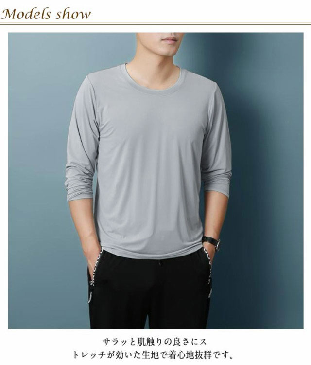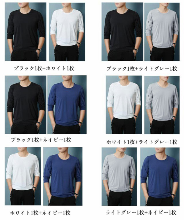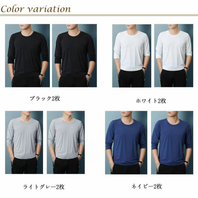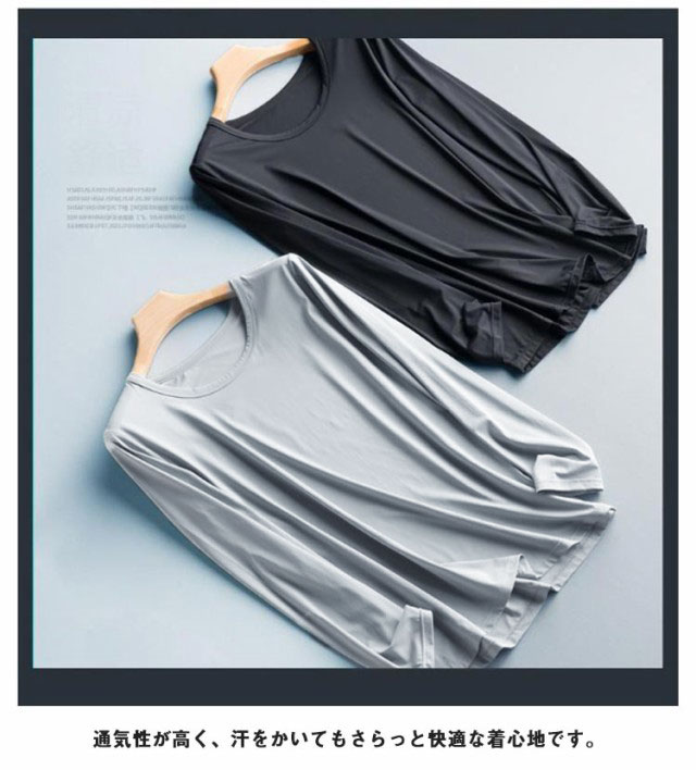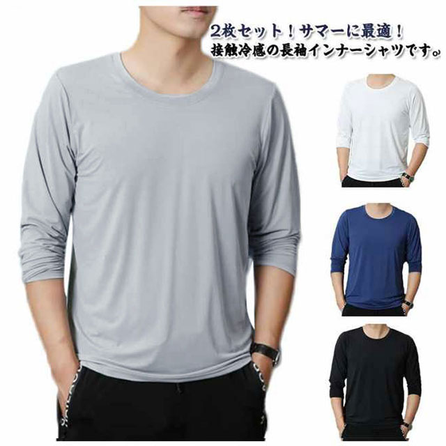 2枚セット!サマーに最適!接触冷感の長袖インナーシャツです。通気性優れた速乾素材!どんな動きにも最適なフィット!通気性が高く、汗をかいてもさらっと快適な着心地です。サラッと肌触りの良さにストレッチが効いた生地で着心地抜群です。シンプルなデザイン、細かい仕上がり、シャツ、ジャケット、スーツは組み合わせやすい。