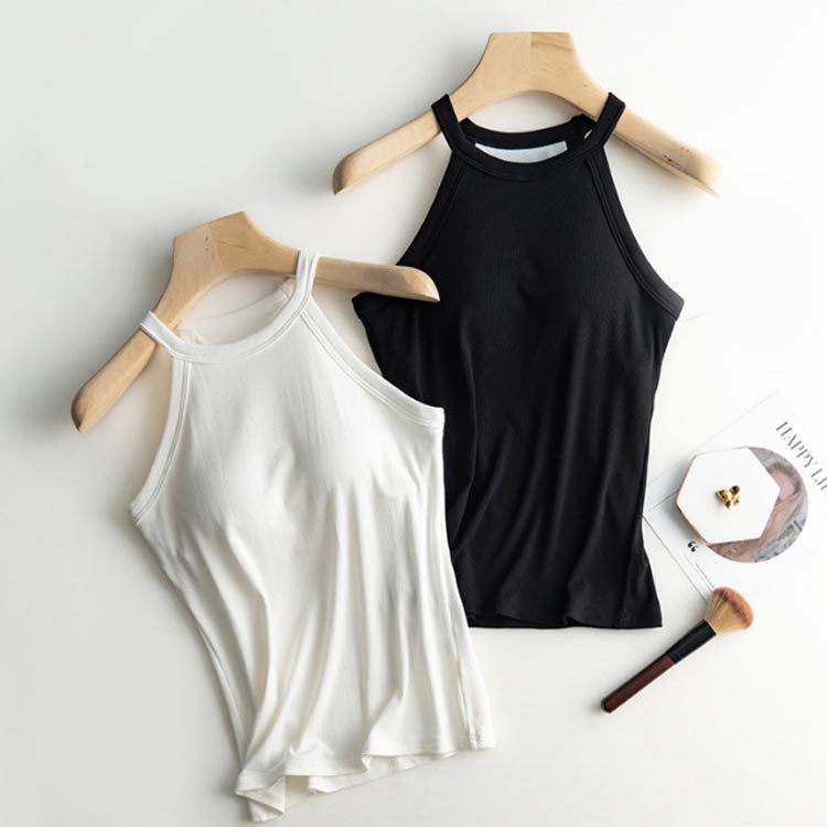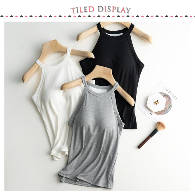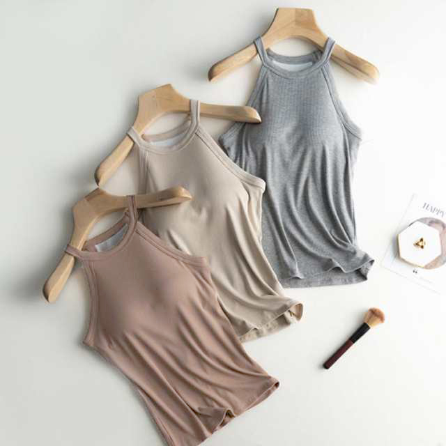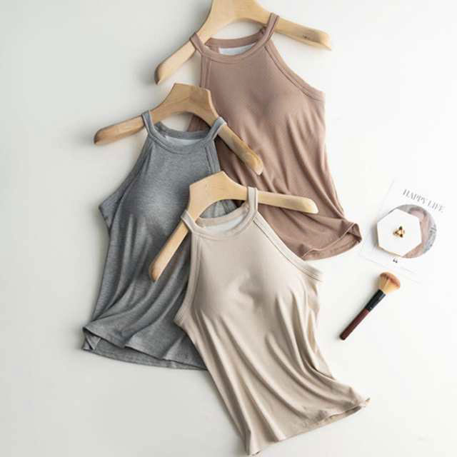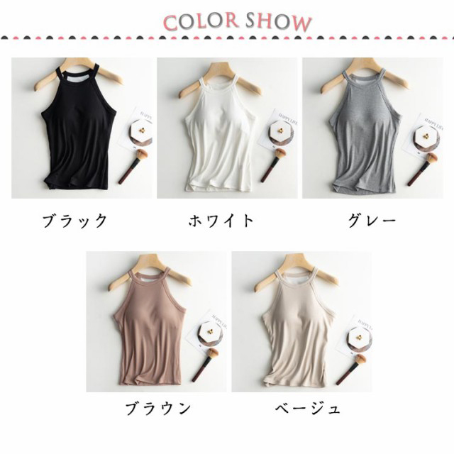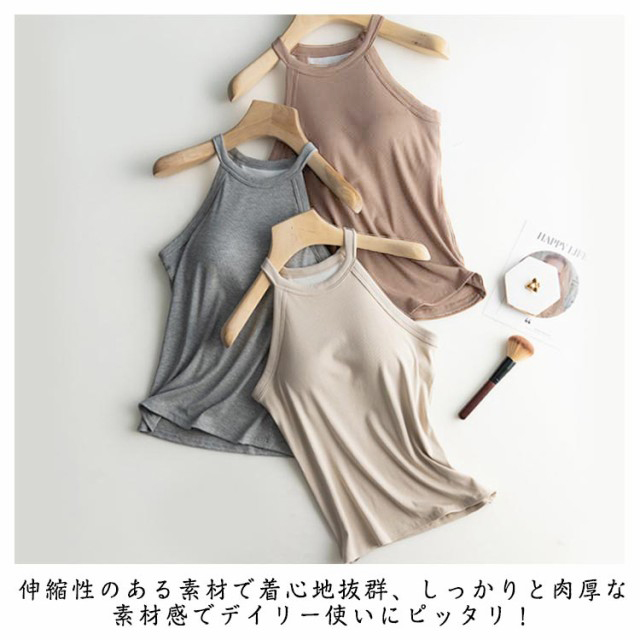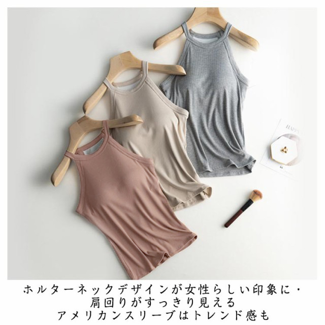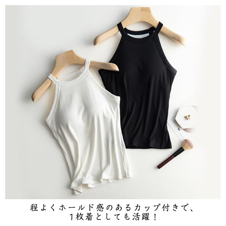 タンクトップ レディース カップ付き トップス ブラカップ ホルターネック ブラトップ キャミソール リブ生地 インナー 無地 レイヤード 重ね着 お洒落 スポーツ ストレッチ性 送料無料
