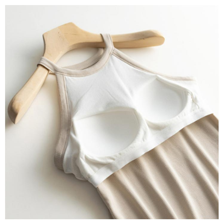 程よい肌見せが叶うトレンドのタンクトップです。程よくホールド感のあるカップ付きで、1枚着としても活躍!ホルターネックデザインが女性らしい印象に・肩回りがすっきり見えるアメリカンスリーブはトレンド感も伸縮性のある素材で着心地抜群、しっかりと肉厚な素材感でデイリー使いにピッタリ!デイリーのインナーにはもちろん、ダンスやヨガ、フィットネス用のインナーとしても幅広く活躍してくれます。