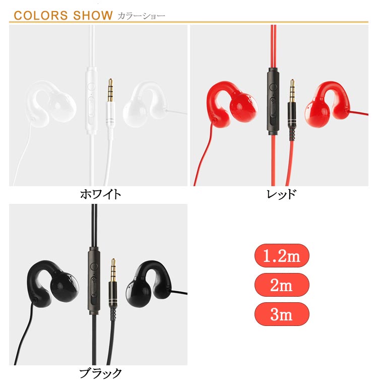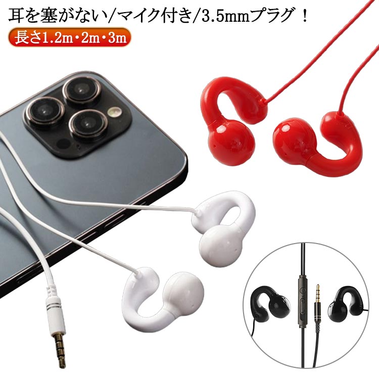 | 耳を塞がない/マイク付き/3.5mmプラグ!長さ1.2m?2m?3m 独自の骨伝導技術で耳の穴を塞ぐことがないので、長時間のワークアウトでも快適に過ごすことができます。 リモコン付きなので、再生/ 停止、通話応答、音量調節が手元で操作可能! 充電いらずでマイクも搭載!有線なので突然充電が切れる心配もなし。パソコンやスマホに繋げば、いつでも利用可能。 着けているのを忘れる装着感!約4.4gと軽量なうえに、耳掛け式の安定感により、快適な装着感を実現。 | |