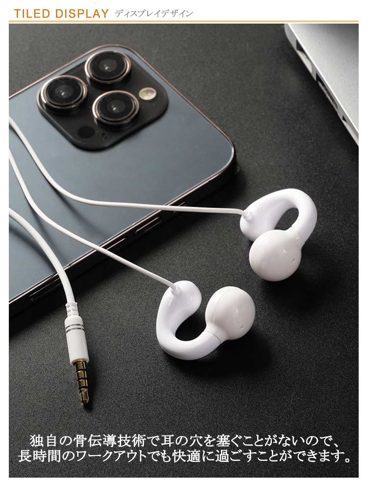 骨伝導イヤホン 有線イヤホン 耳を塞がない マイク付き 骨伝導ヘッドセット 3.5mm TYPE-C 1.2m 2m 3m ながら聴きイヤホン オープンイヤー 開放型 イヤホン 黒 白 骨伝導ヘッドフォン ハンズフリー 通話可能 軽量 快適 テレワーク 運動 送料無料
