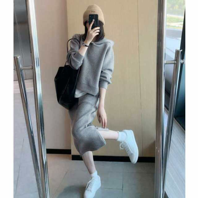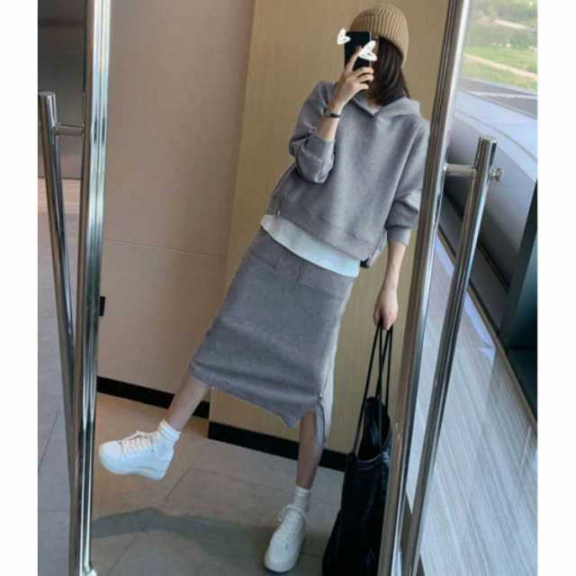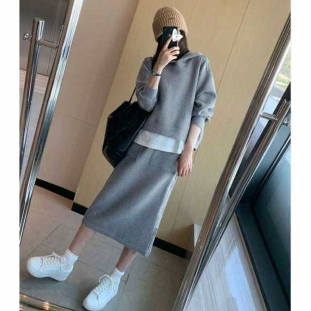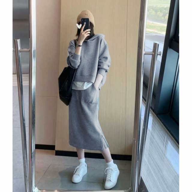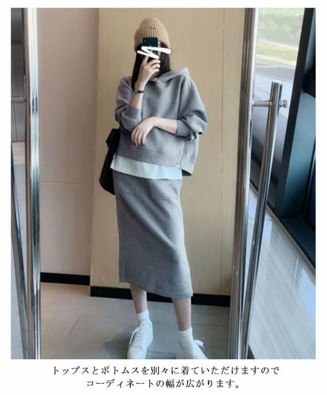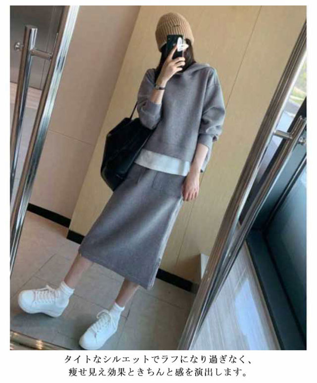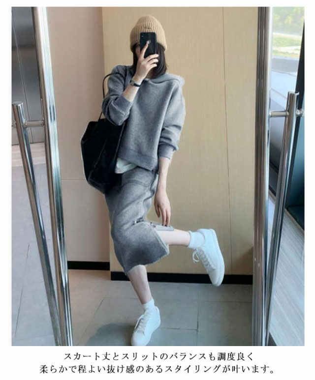 パーカー レディース セットアップ 上下セット 2点セット スカート タイトスカート スウェット 秋 スポーツウェア スリット 着瘦せ フード付き 大きいサイズ 長袖 おしゃれ 可愛い ゆったり カジュアル スポーツ お洒落 部屋着 ルームウェア 送料無料