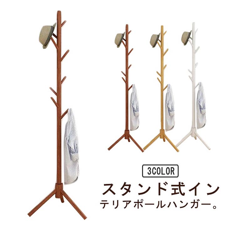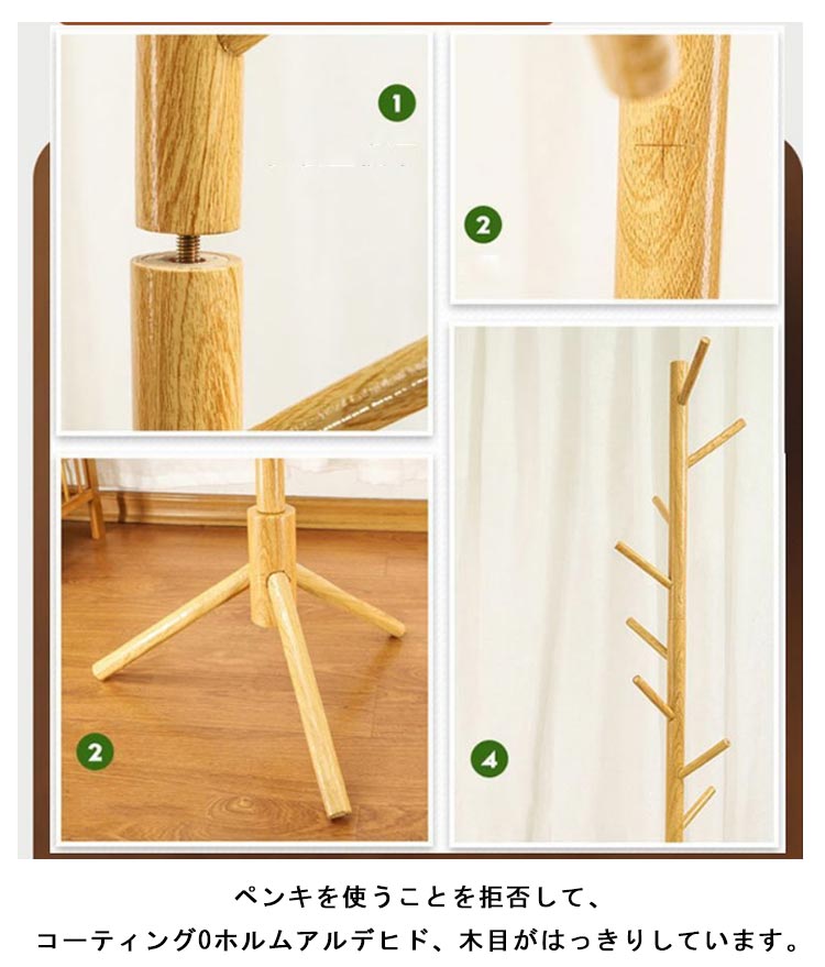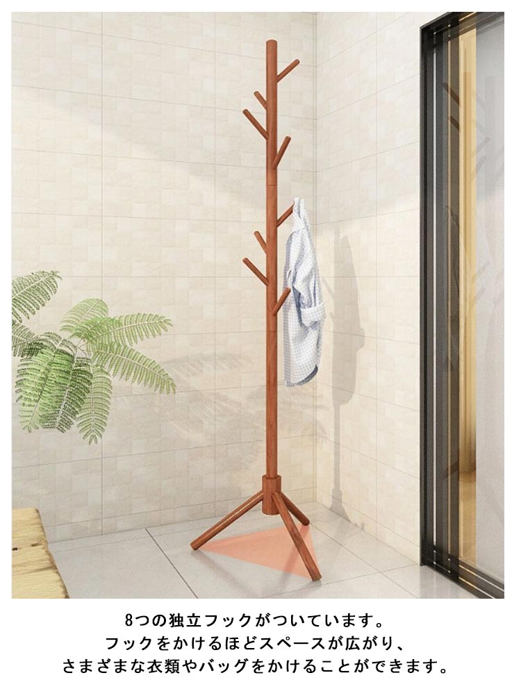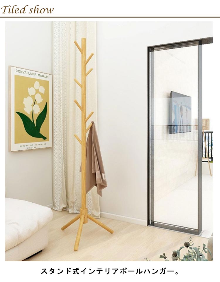 スタンド式 多機能ハンガー ポールハンガー ハンガーラック コートハンガー ポールスタンド スリム 洋服掛け 衣類掛け 木製 天然木 おしゃれ 北欧 シンプル 小枝掛け 省スペース リビング 玄関 ワンルーム 贈り物 プレゼント ギフト