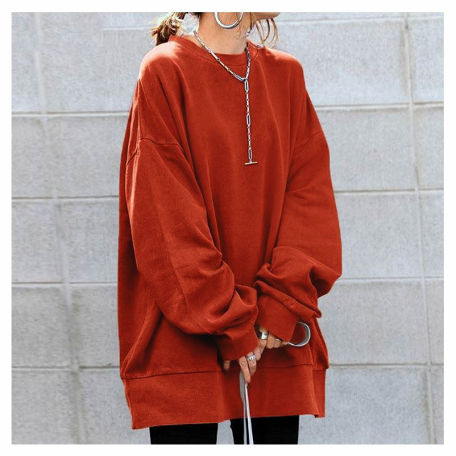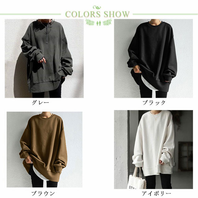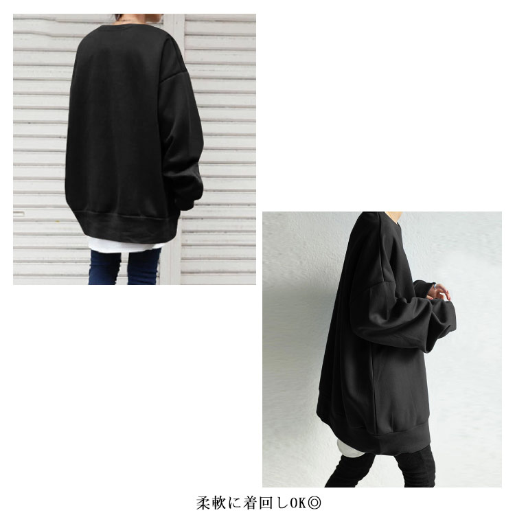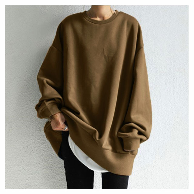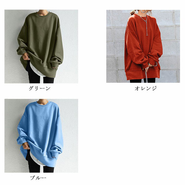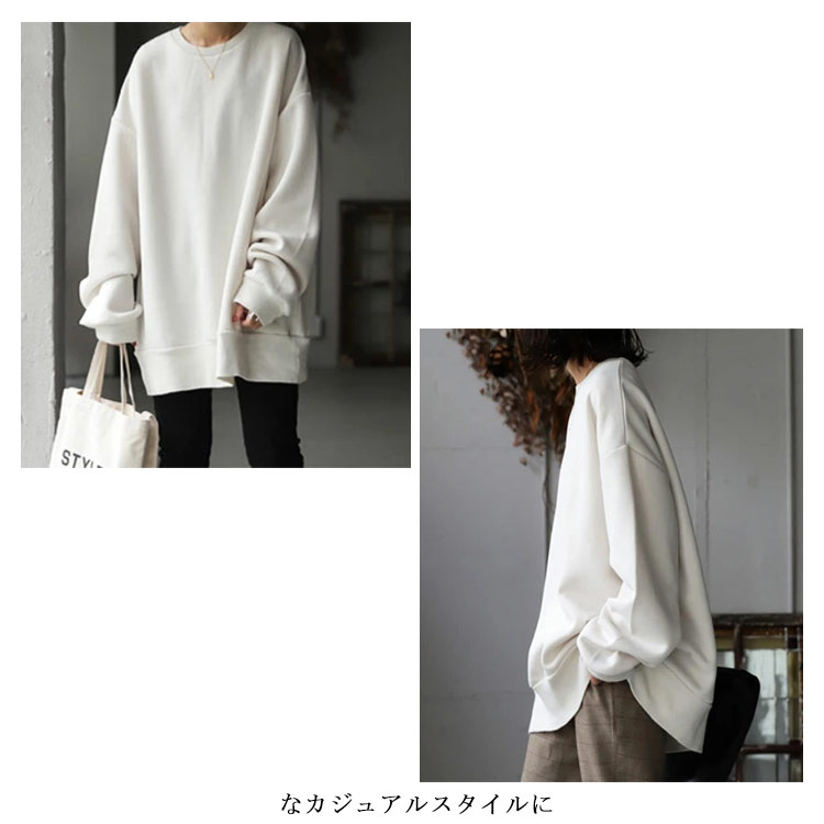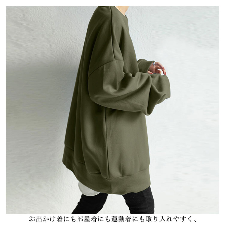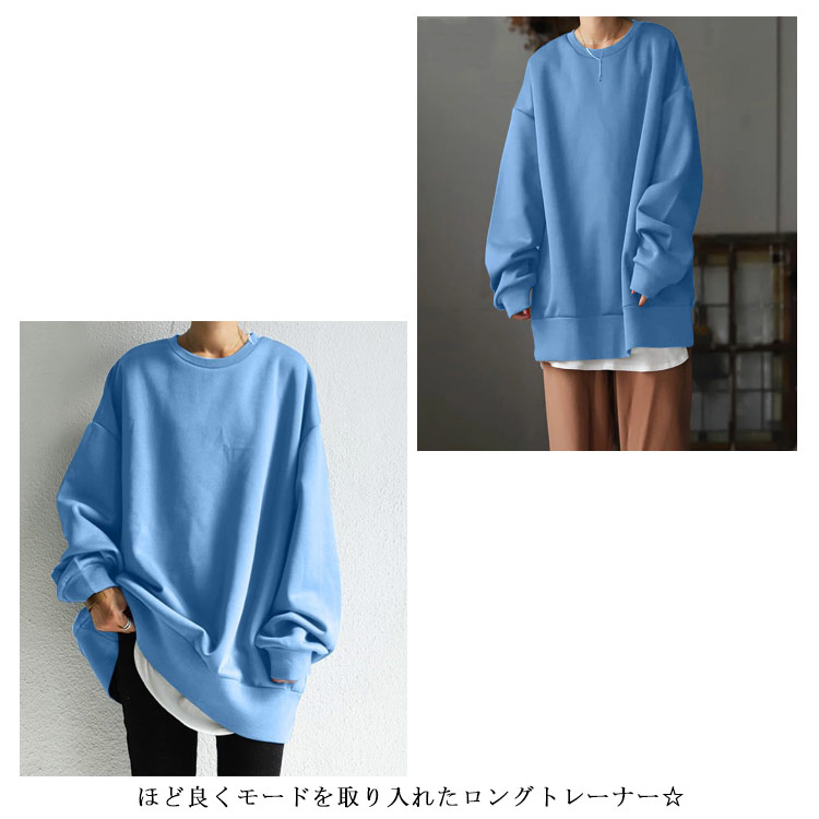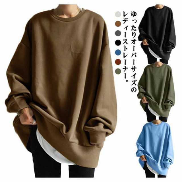 トレーナー スウェット プルオーバー 夏新作 レディース ロング丈 長袖 送料無料 大きいサイズ 秋冬 トップス ゆったり ビッグシルエット オーバーサイズ おしゃれ ドルマンスリーブ カジュアル