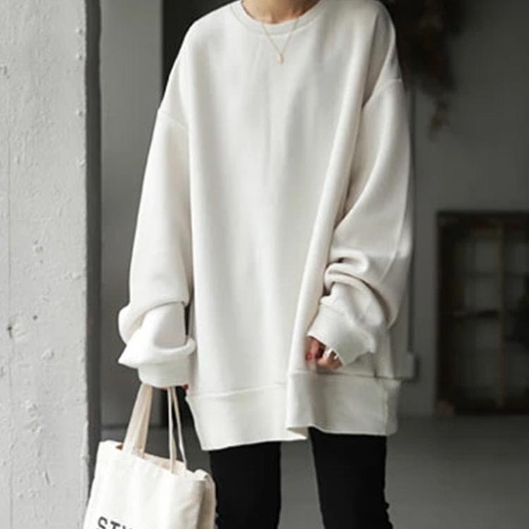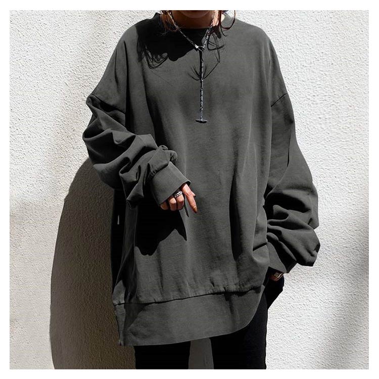 ゆったりオーバーサイズのレディーストレーナー。なカジュアルスタイルにほど良くモードを取り入れたロングトレーナー☆お出かけ着にも部屋着にも運動着にも取り入れやすく、柔軟に着回しOK◎