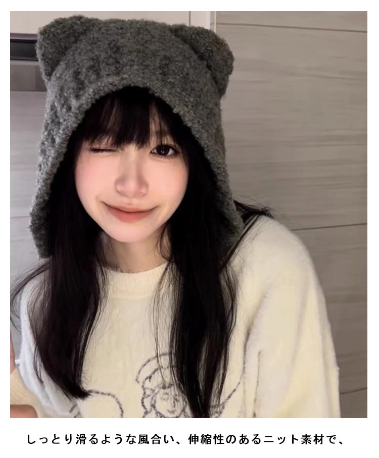 ニット帽 猫耳 猫 レディース ネコ耳 猫耳 イヤーカバー ニットキャップ 冬 秋 小顔効果 厚手 耳あて ふわふわ もこもこ ハット 帽子 あったか 保温 ループ糸 スリット ローゲージ ねこ ネコ 防寒 通学 通勤 インスタ映え Youtube 送料無料