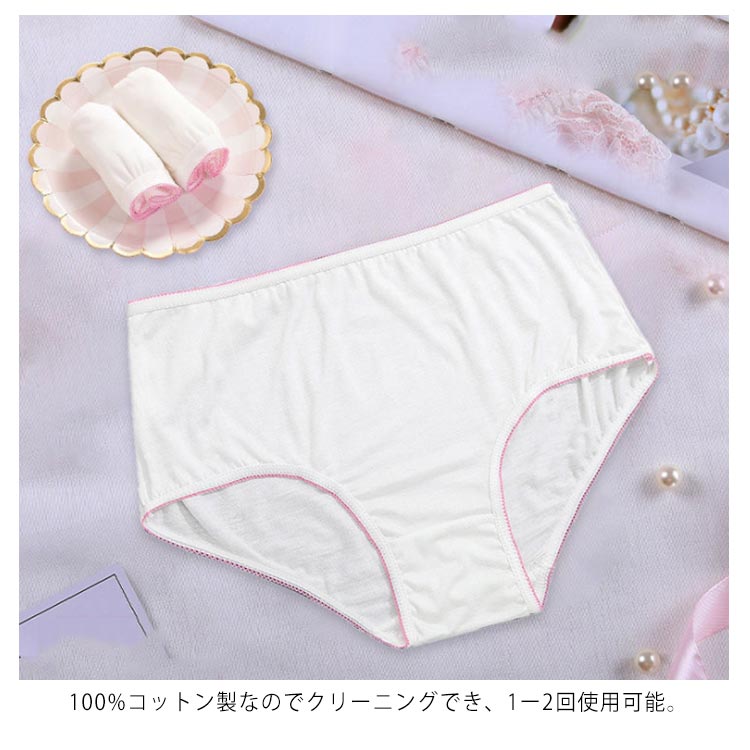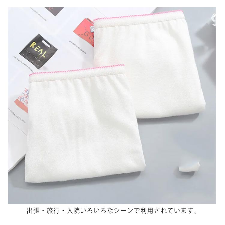 女性用の使い捨てコットンショーツです。100%綿製で、通気性が良く、ぴったりフィットするので履き心地が抜群!100%コットン製なのでクリーニングでき、1ー2回使用可能。10枚入り、1枚ごとに個別梱包されているので衛生的で、出し入れもとても便利な使い捨てタイプです。出張・旅行・入院いろいろなシーンで利用されています。※綿100%素材ですので、洗濯が可能ですが、使い捨てを前提に開発されたもので、繰り返し洗濯・使用をすると破れる場合がありますのでご注意してください。