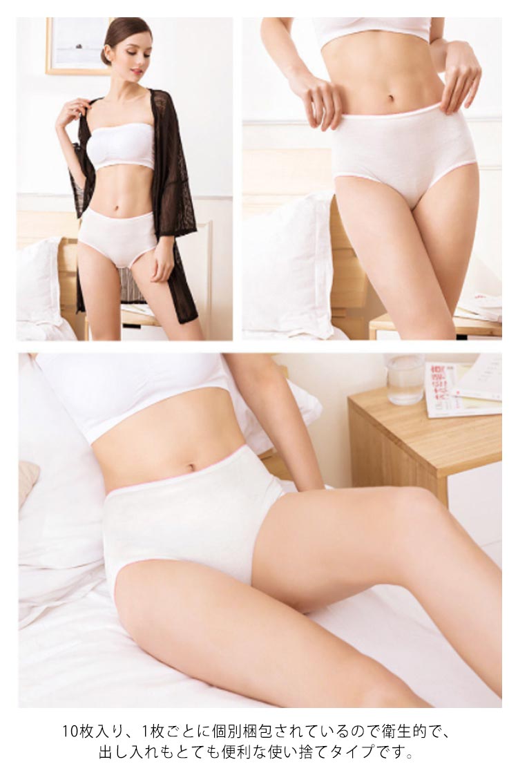 【送料無料】使い捨て パンツ ショーツ 大人用 ディスポ 綿100% 携帯 トラベル 旅行 出張 個包装 コンパクト 10枚セット 二重クロッチ 衛生的 生理