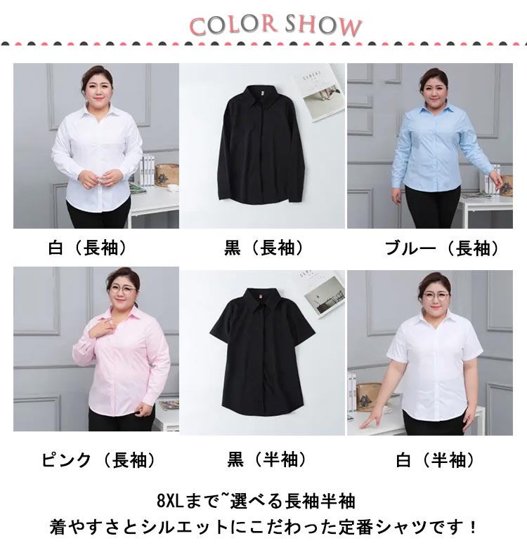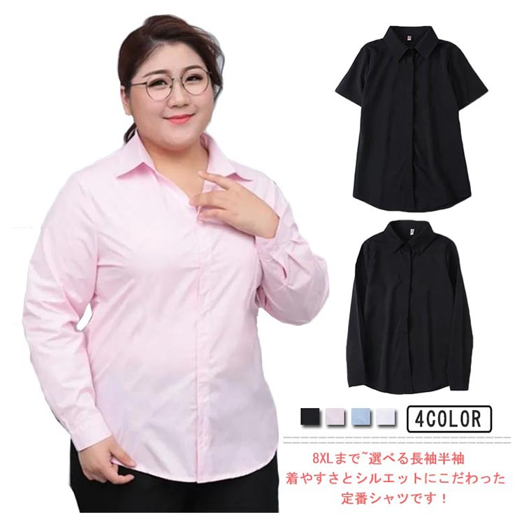 8XLまで 美しく着れる 大きいサイズ 選べる 長袖 半袖 ストレッチ 長袖 半袖 白シャツ スーツ 半袖シャツ スーツ ブラウス インナー オフィス ビジネス 事務服 制服 ボタン ゆったり ゆるシャツ ぽっちゃりさん OL 会社 通勤 ワイシャツ白 ホワイト