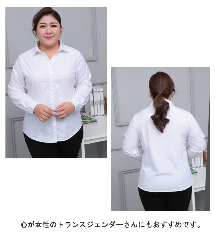 8XLまで~選べる長袖半袖 着やすさとシルエットにこだわった定番シャツです!大きいサイズ専用の型紙を使用して、ほどよいストレッチがきいているので首元もすっきり。苦しくありません。ボタンとボタンの間が浮いて開かないようなデザイン。大切なことなのでココこだわりました♪スカートにもパンツにも合う白シャツ。大きいサイズなので心が女性のトランスジェンダーさんにもおすすめです。