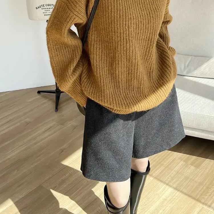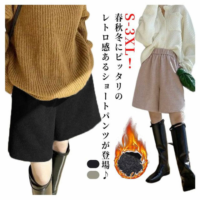 S-3XL!春秋冬にピッタリのレトロ感あるショートパンツが登場♪ストレッチ性もあるので、動きやすく穿きやすい。大人の女性に嬉しい、スッキリAラインデザイン。ウールタッチ素材使いでカジュアルテイスト仕上げ! 秋冬色らしい深みのあるカラーリングが美しい。ハーフ丈ですので足捌きも良く軽くて快適な着心地が叶います。洗練されたお洒落なコーディネイトに仕上がります。