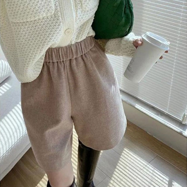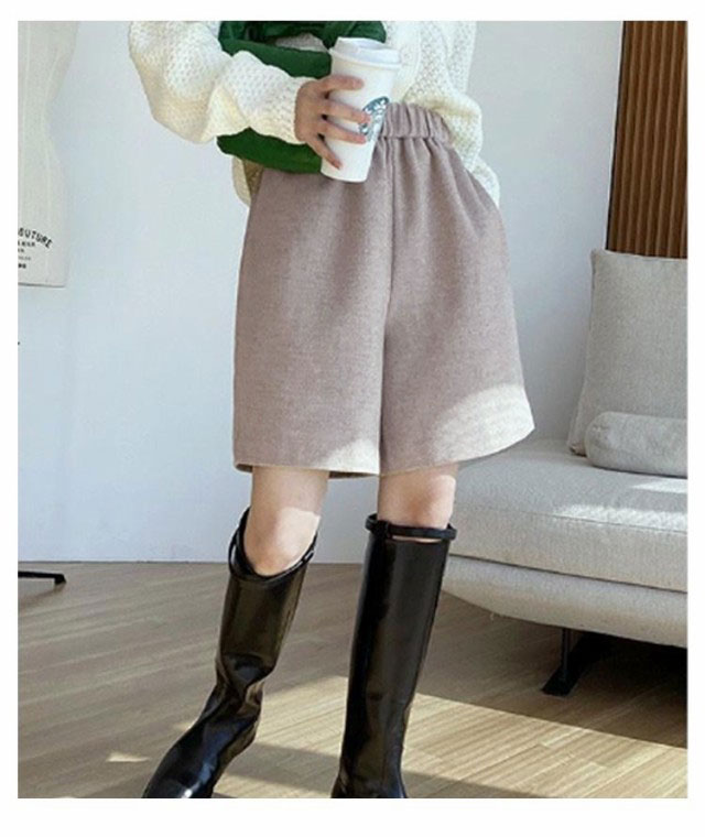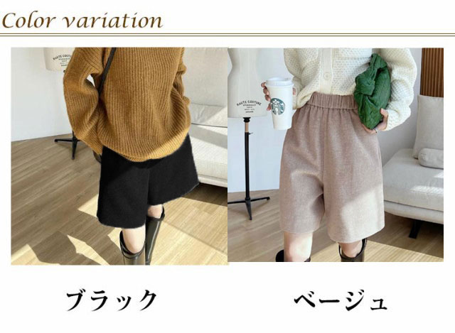ウールタッチ ハーフパンツ レディース ショートパンツ 膝丈 無地 短パン 五分丈 ワイドパンツ 半ズボン ショーパン 暖かい 防寒 厚手 シンプル 上品 きれいめ 秋冬 春 秋 冬 カジュアル 体型カバー ゆったり 大きいサイズ 送料無料 S-3XL