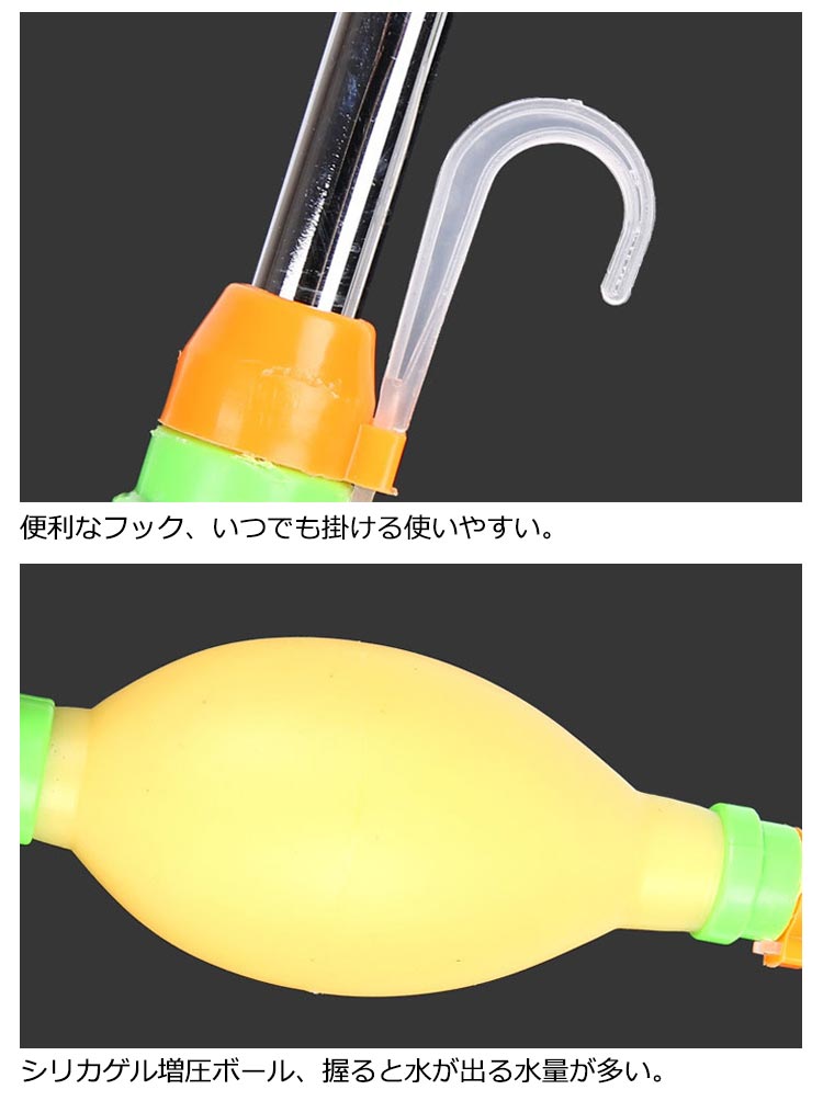 | 2.1m 3.0m の2サイズ選べる! 釣り、キャンプ、アウトドアなどで手洗い等に最適 | |
