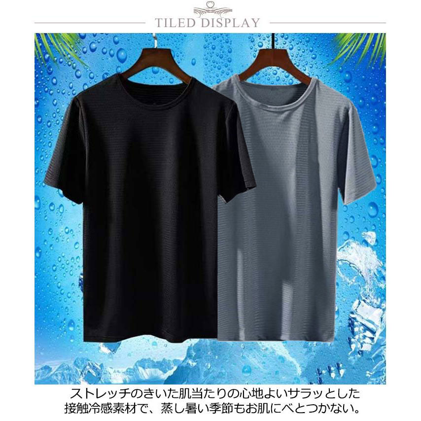 2枚セット!tシャツ メンズ 半袖 クールコア 半袖 Tシャツ 接触冷感 メッシュ生地 涼しい トップス クルーネック 吸汗速乾 UVカット メンズ メッシュ スポーツ 作業服 作業着 無地 大人 黒 ブルー グレー 20代 30代 40代 50代