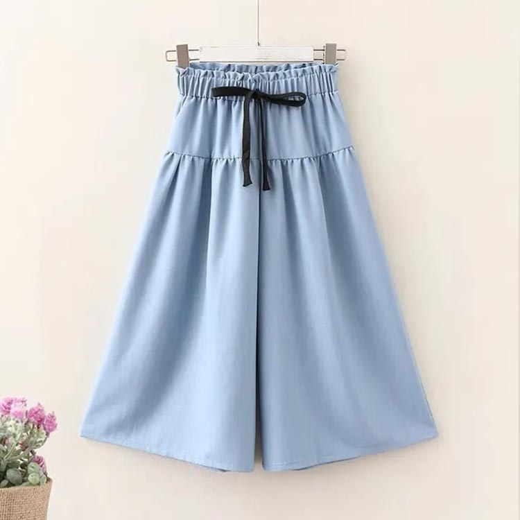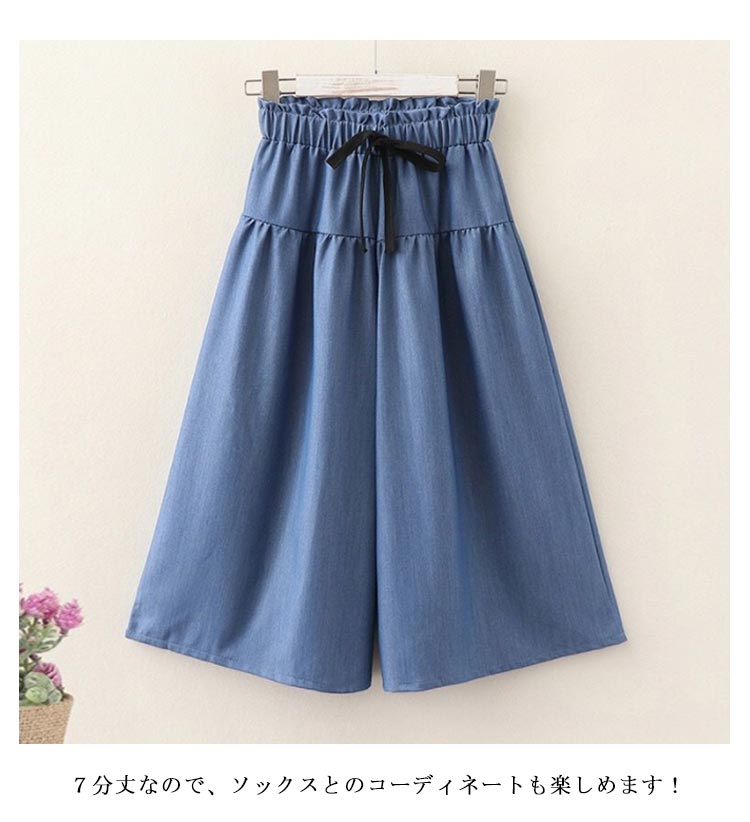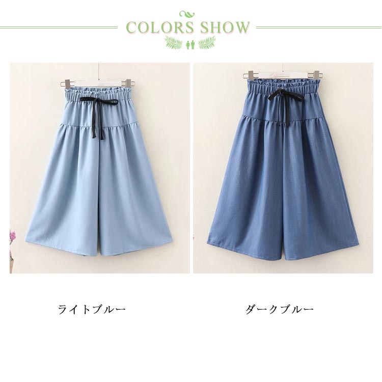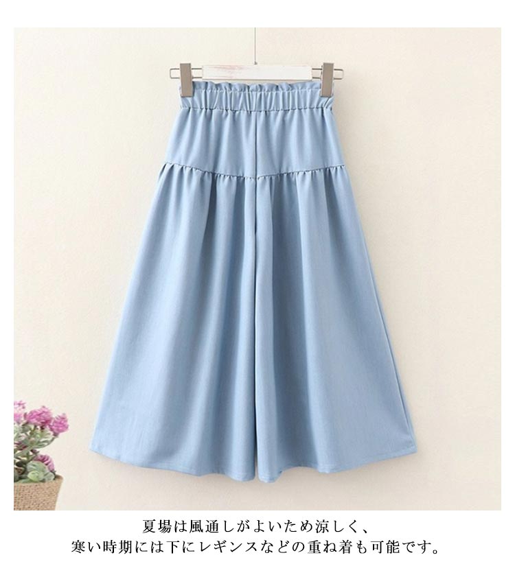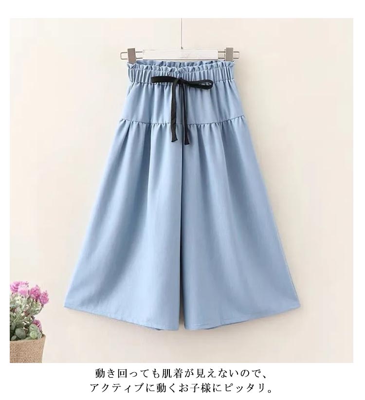 子供服 キッズ 女の子 ガールズ ワイドパンツ ガウチョパンツ 送料無料 ネイビー ブルー 110 120 130 140 150 160 170 七分丈 フレア 長ズボン ボトムス 春 夏 ウエストゴム 通学 おしゃれ かわいい シンプル