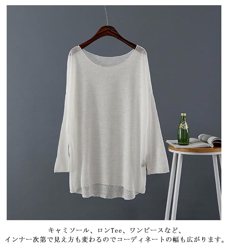 シアーニット シアートップス レディース チュニック 長袖 シースルー セーター 透け感 プルオーバー シースルー ライトニット 薄手 春夏 秋 レイヤード 透け カットソー 丸首 無地 大きいサイズ ゆったり 体型カバー ニット 重ね着 大人 女性 送料無料