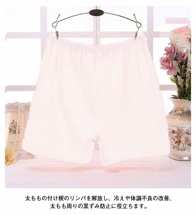 | 太もも周りを締め付けない女性用トランクスショーツです。 お腹まですっぽりの深ばき丈。 優しい肌触りの綿生地で吸汗性、通気性があります。 ウエストはゴムでお腹を締めつけにくく、脱ぎやすい。 太ももの付け根のリンパを解放し、冷えや体調不良の改善、太もも周りの黒ずみ防止に役立ちます。 | |