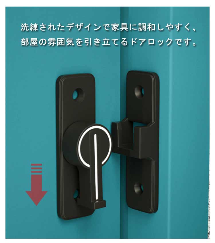 | 丈夫で耐久性に優れる亜鉛合金製のドアロック。 スライド式のロックでクルッと回すだけで簡単に施錠ができます。 ネジと強力粘着剤の貼りつけの2種類の取りつけ方法があり、しっかりと設置できます。 ドアや窓、引き戸、キッチンの戸棚、引き出しなど、さまざまな場所で活躍します。 洗練されたデザインで家具に調和しやすく、部屋の雰囲気を引き立てるドアロックです。 防犯用にはもちろん、鍵のない部屋につけてプライベートを確保する使い方もできます! 子供のいたずら?ケガや、ペットの脱走防止に役立ちます。 | |