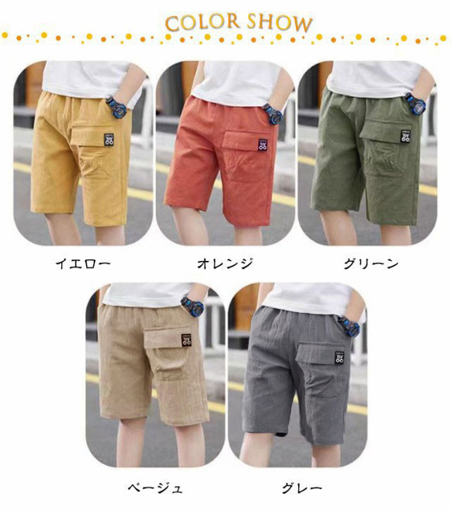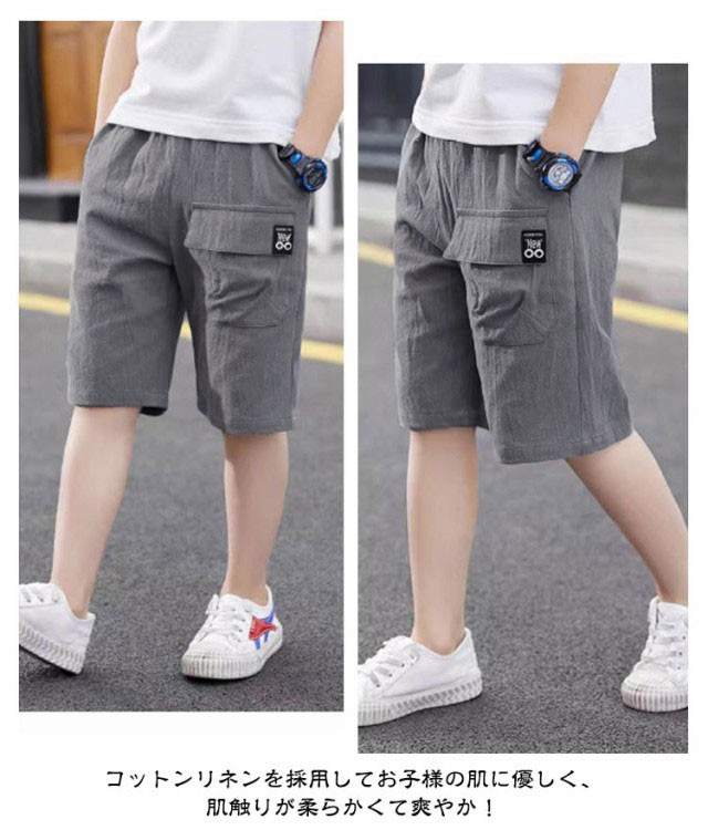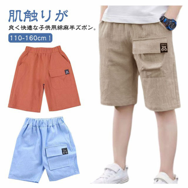 ハーフパンツ キッズ 男の子 カーゴパンツ 子供服 半ズボン 無地 パンツ 綿麻 薄手 涼しい 快適 ウエストゴム 部屋着 ルームウェア ジュニア 通園 入園式 卒業式 夏物 夏服 通学 ボーイズ ショートパンツ 短パン おしゃれ カジュアル お出かけ 送料無料 110-160cm