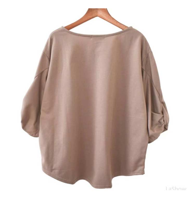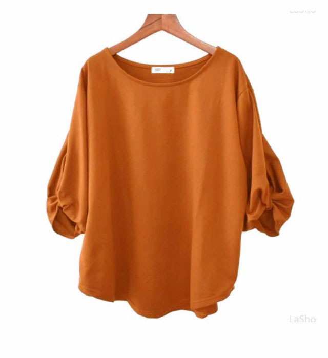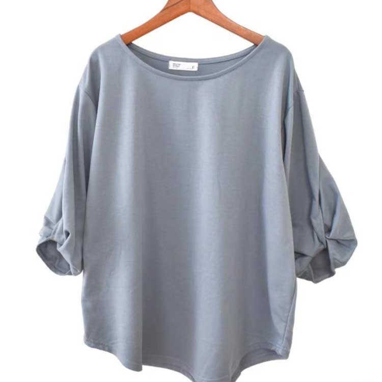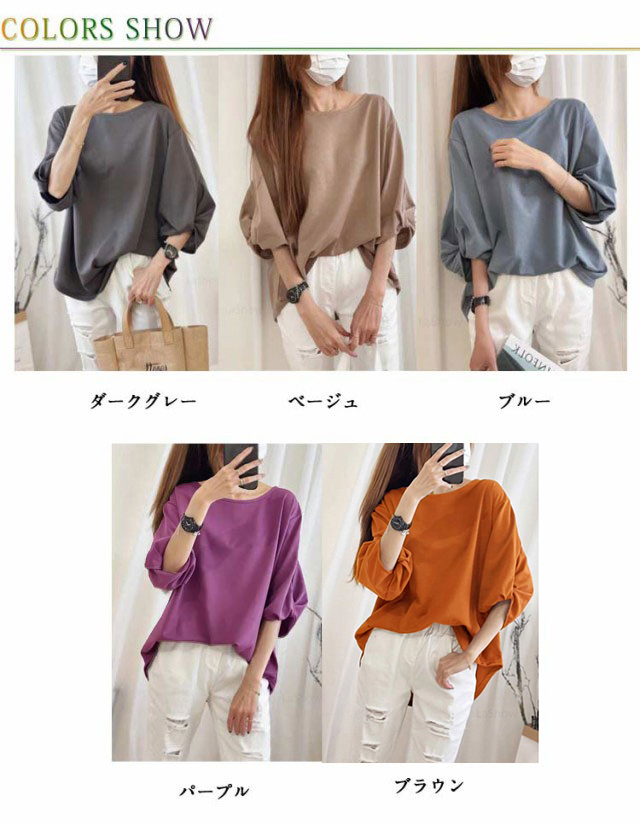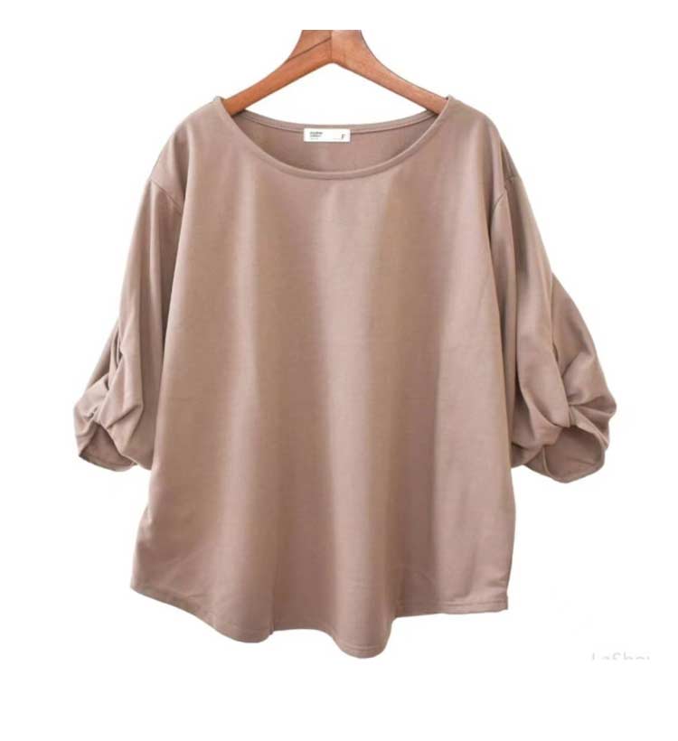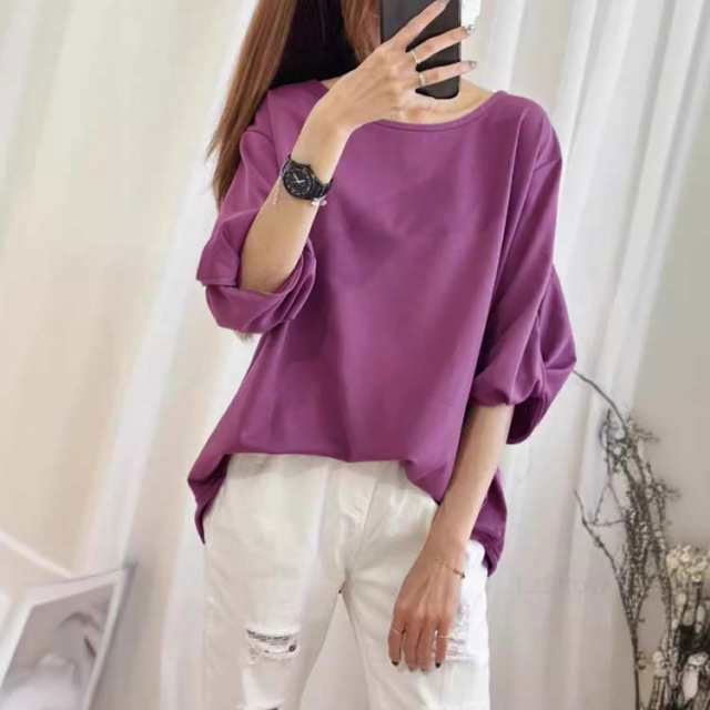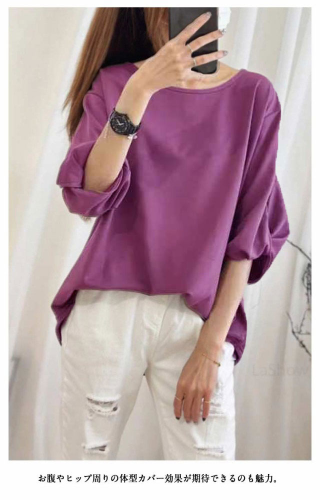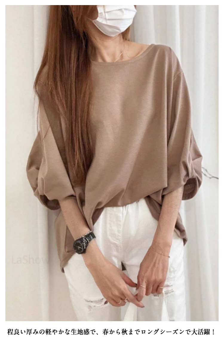 レディース 7分袖 春夏 Tシャツ トップス パフスリーブ 無地 可愛い 秋物 七分袖 丸首 カットソー おしゃれ ゆったり 大きいサイズ きれいめ 体型カバー カジュアル シンプル 送料無料